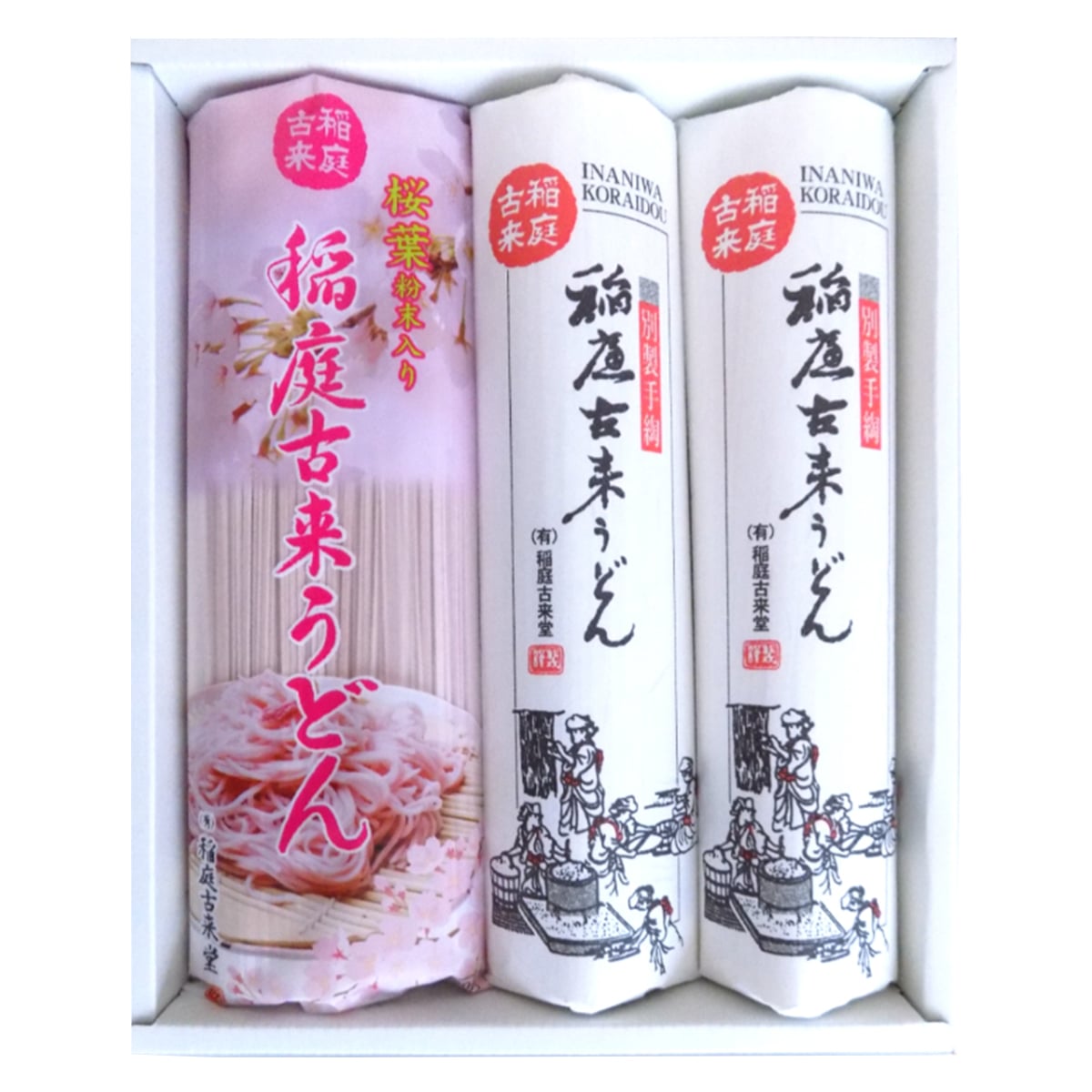 ●数量・内容:うどん150g×2、桜葉粉末入り稲庭古来うどん300g×1
