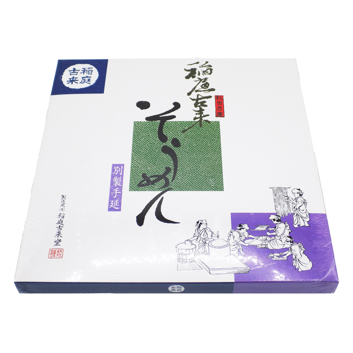 「稲庭古来そうめん 紙箱入」は、秋田・栗駒山系の清らかな伏流水を使用して、油を使わずに仕上げた極細のそうめんです。冷たく冷やした麺とつゆでサッパリと召し上がるのはもちろんのこと、温かいつゆでサッと煮込んで温麺(にゅうめん)としてもお楽しみいただけます。化粧箱に入れてお届けしますので、贈答用にもぴったりです。