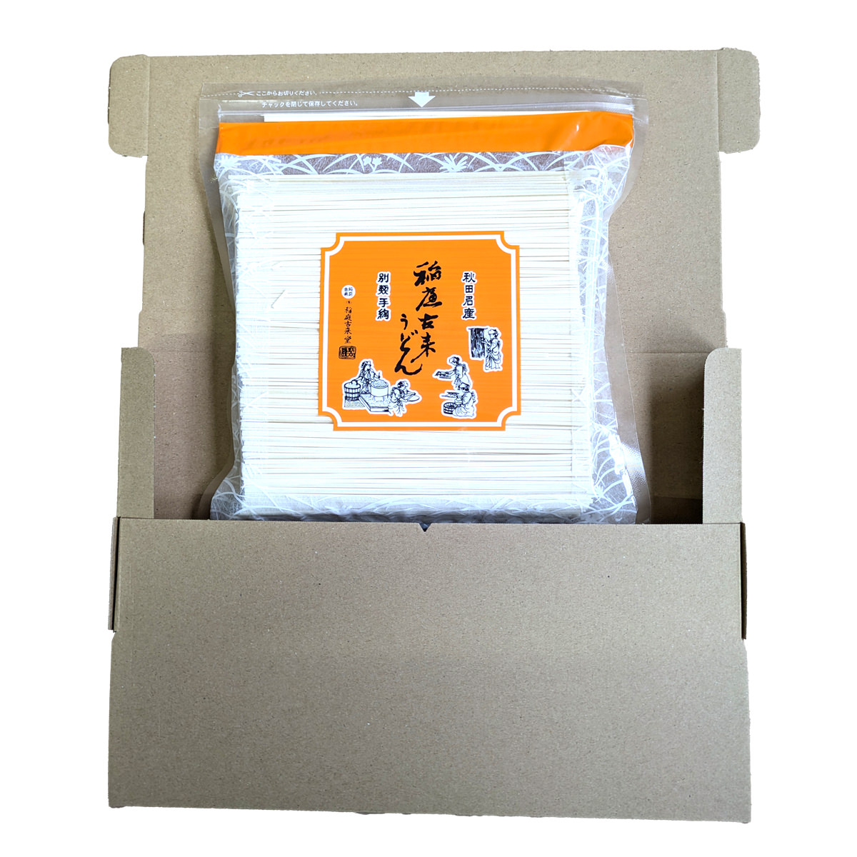 ツルッとしたのど越しと程よいコシに定評がある「稲庭古来うどん チャック付 自家用」です。秋田県稲庭地区に江戸時代から継承されている伝統製法を用いて、熟練の職人が1本1本丁寧に仕上げています。たっぷり8人前を保存に便利なチャック付き袋に入れました。