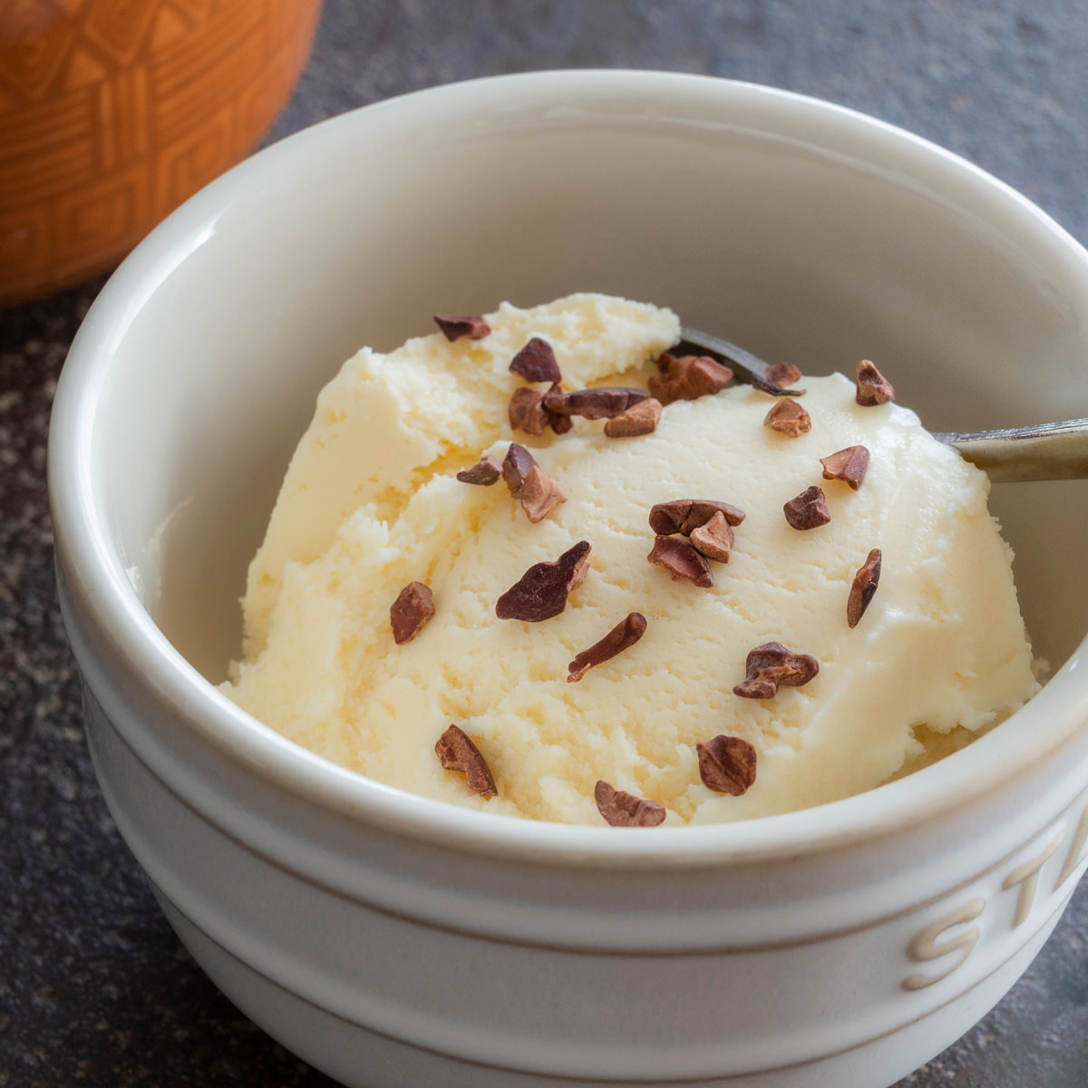 「カカオ豆 破砕 カカオニブ」は、カカオ豆を焙煎して皮をはぎ、細かく砕いたものです。「ニブ(ニブス)」には細かく砕くという意味があります。ドライナッツの食感、カカオの深い香り、苦味が特徴です。鼻に抜けるとチョコレートのような風味も感じます。スーパーフードとしても注目を浴びているカカオニブ。カカオポリフェノールが多く含まれています。カフェインや脂肪分も多く含まれるため、食べ過ぎにはご注意ください。そのままお召し上がりいただくのはもちろん、アイスクリームやヨーグルト、マーマレードのトッピングなどにどうぞ。クッキーやパウンドケーキの材料としてもおススメです。