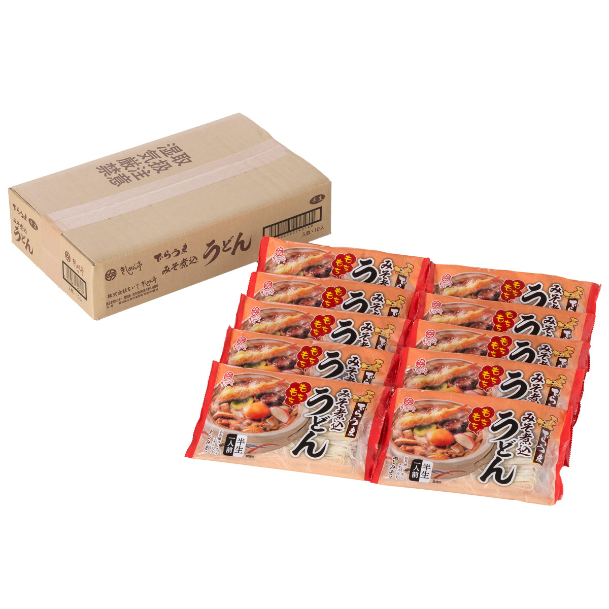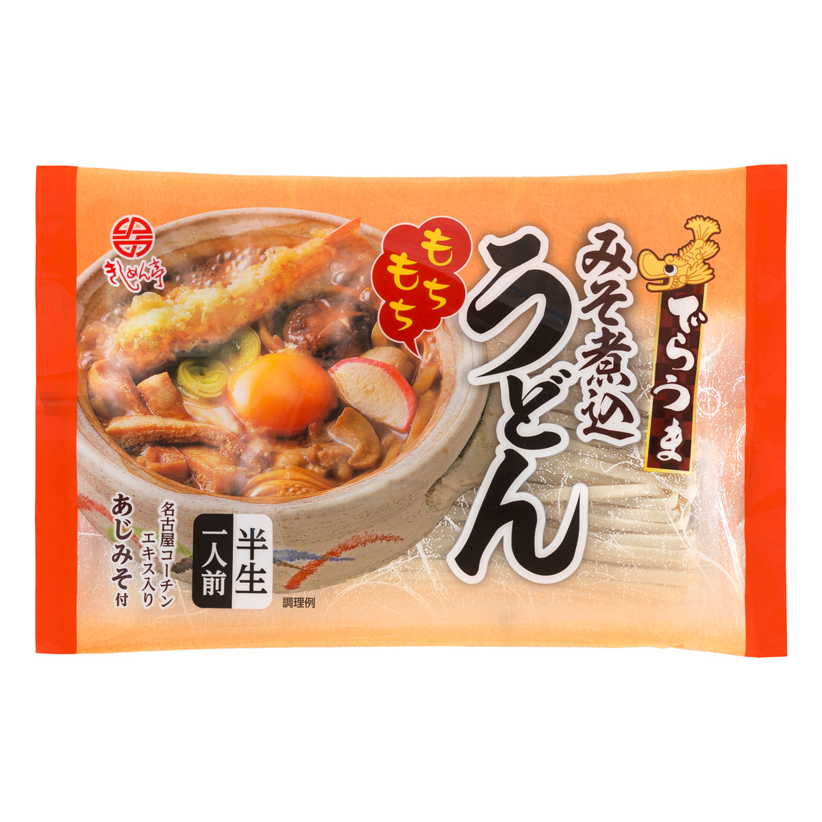「名古屋 でらうま みそ煮込うどん 半生麺」は、もちもちとした食感が自慢の半生めんを、名古屋コーチン鶏ガラエキス入りのあじみそで煮込むみそ煮込うどんです。