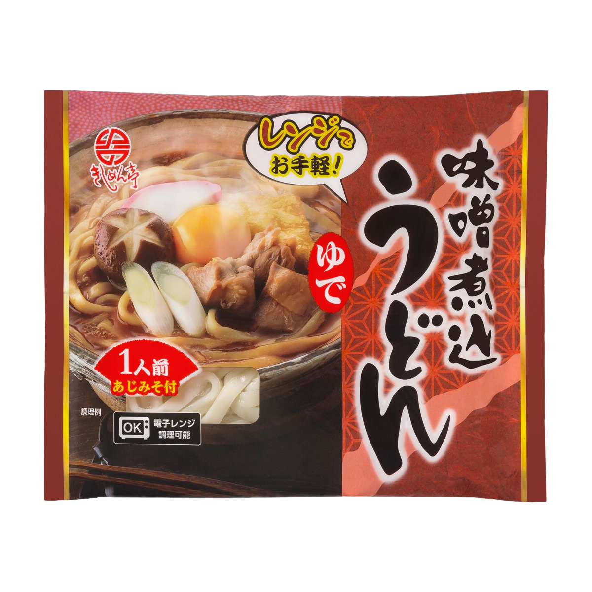 ソフトな弾力の良いめんを赤みそベースのあじみそで煮込む「レンジ対応 名古屋 ゆで 味噌煮込うどん」です。麺は電子レンジで温められるので、お手軽かつ簡単に調理できます。
