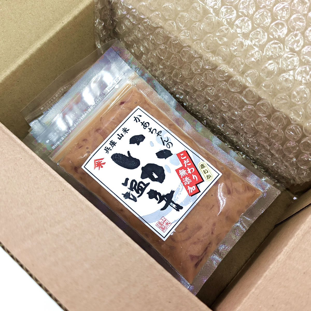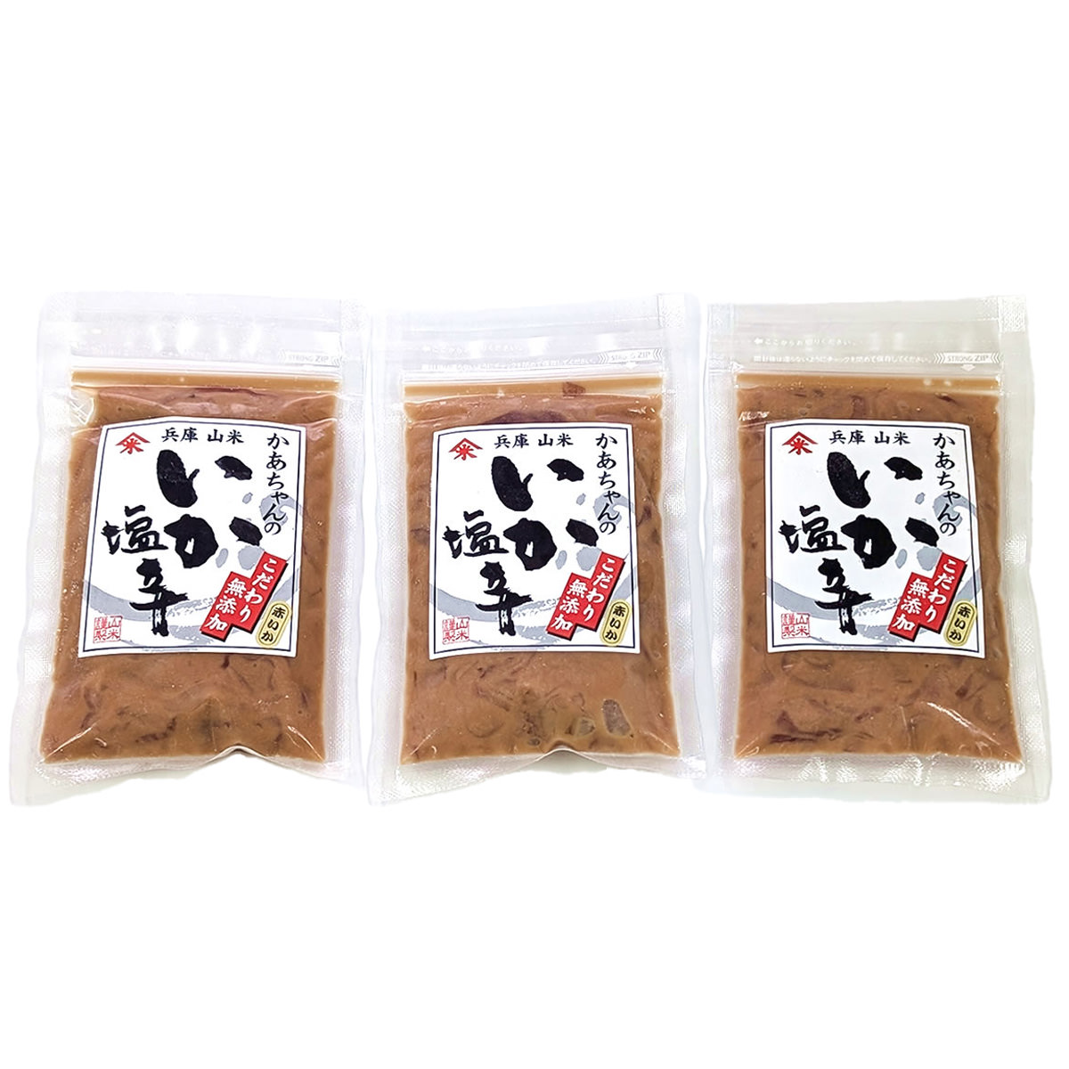 ●原材料:赤いか(兵庫県浜坂産)、酒粕、粗糖、いか内臓(兵庫県浜坂産)、食塩、清酒、味醂、醤油(一部にいか・小麦・大豆を含む)