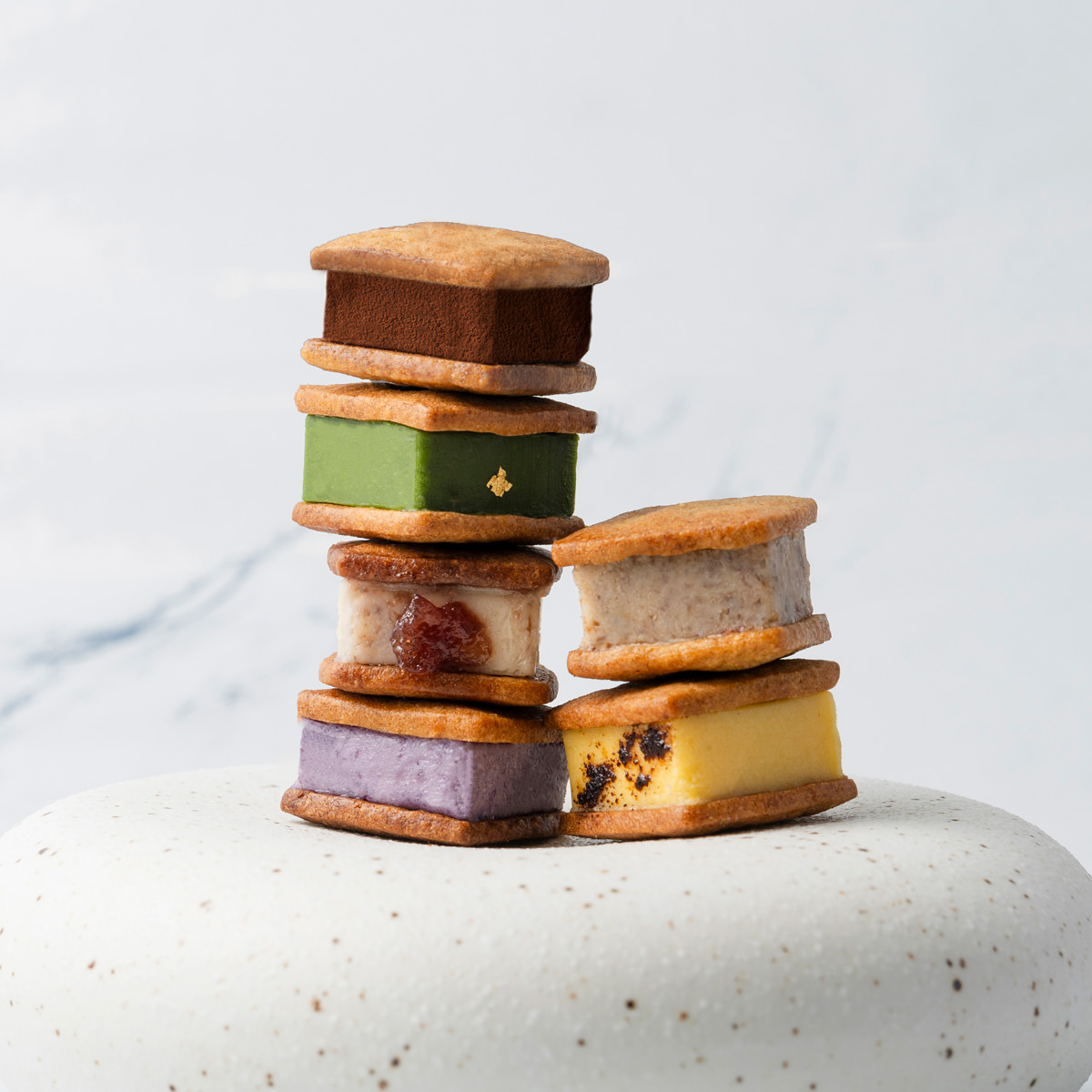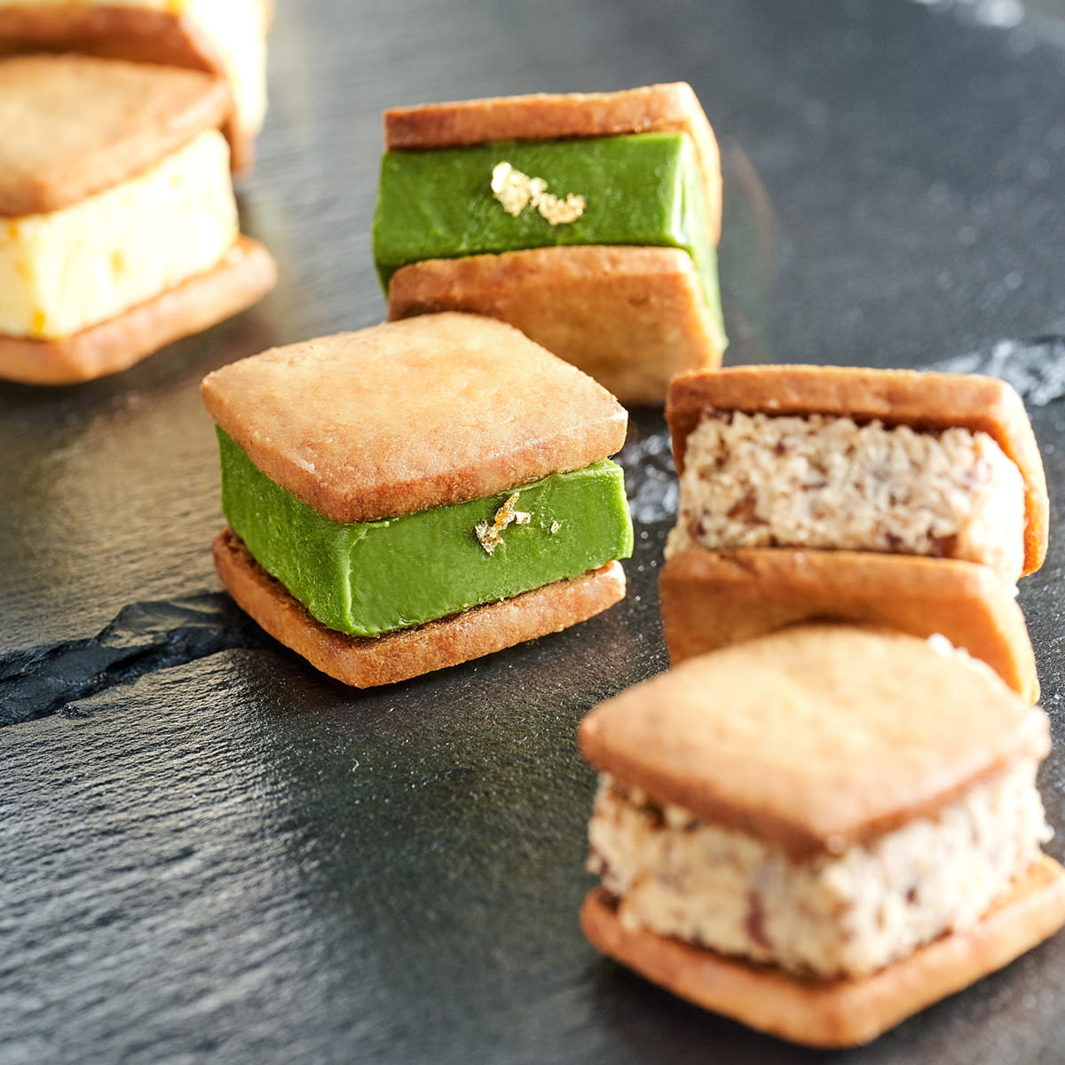 濃厚抹茶、クラッシュレーズン、いちじくの赤ワイン煮(和歌山県産食材使用)、湯浅角長しょうゆプリン(和歌山県産食材使用)、完熟ブルーベリー(和歌山県産食材使用)、ティラミスをセットにしました。おやつやお茶菓子などとして、味わいの違いを食べ比べてお楽しみください。ひとくちサイズなので、複数のフレーバーを一度に味わえます。冷凍でお届けしますので、解凍してからお召し上がりください。