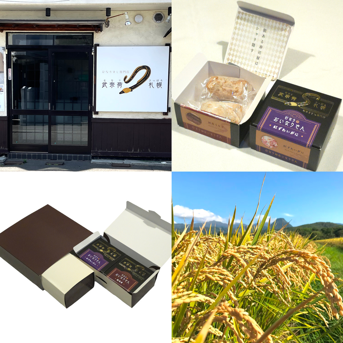 ●原材料:<国産うなぎ>米(北海道産)、油揚げ(大豆(北海道産))、ウナギ蒲焼(ウナギ(国産)、醤油、ミリン、砂糖)、モチ米粉、白玉粉、食酢、テンサイ糖、塩、酒、昆布、椎茸、鰹節/乳化剤、炭酸カルシウム、炭酸マグネシウム、ソルビトール、(一部に小麦・大豆・乳成分を含む)