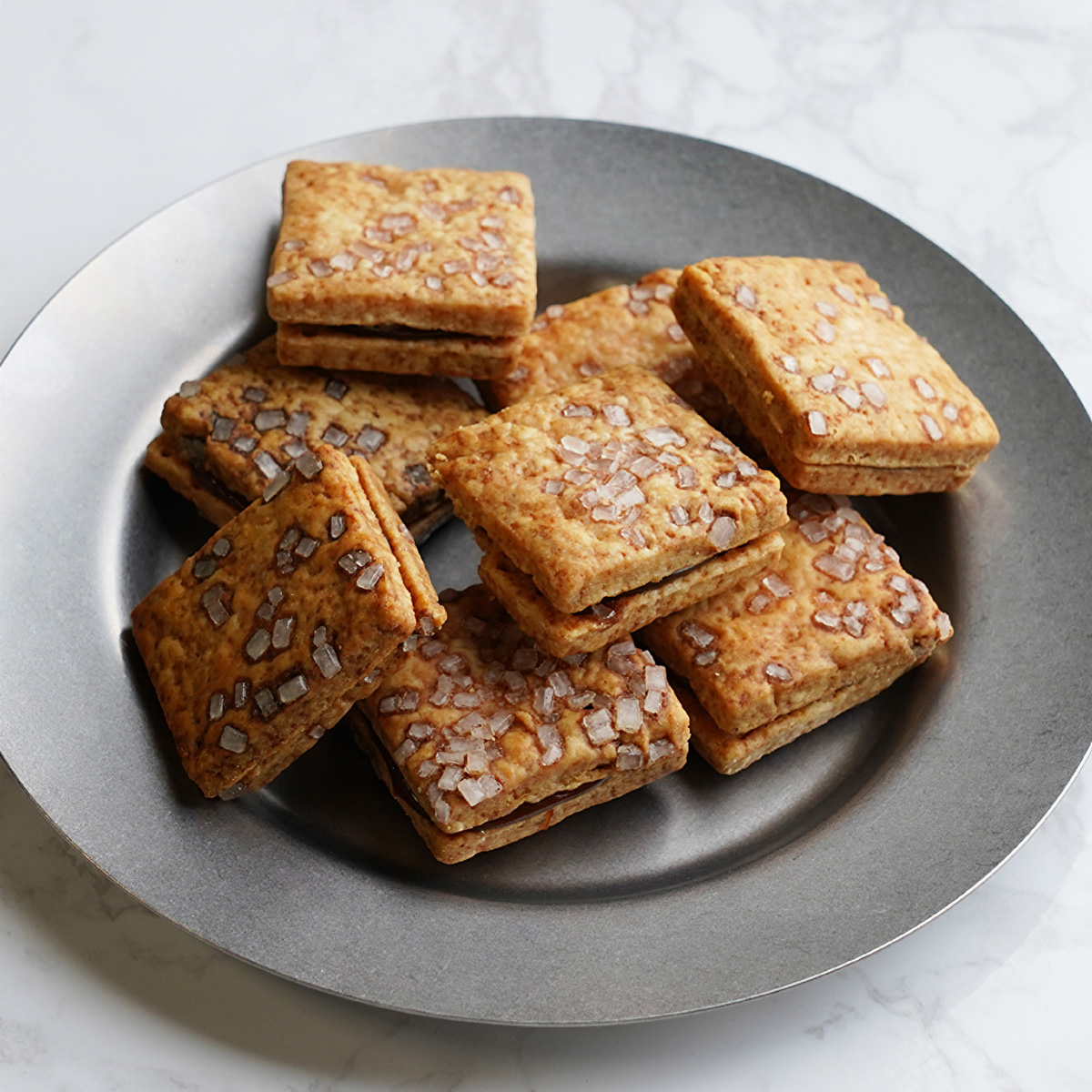 BLOCK BLOCK TOKYO(ブロックブロックトーキョー)の「バスクチーズクッキー(Basque Burnt Cheese Cookie) ショコラ」です。濃厚なチーズの塩味により、ショコラの苦味、甘さが引き立つ、素材どうしの相性も良いクッキーができあがりました。外側はザクッとした食感、生地にはたっぷりチーズ、中はトロッと食感が加わり、全体をショコラ風味で包み込んでいます。おやつ、お茶菓子などとして、食感と風味を楽しめるBLOCK BLOCK TOKYOの逸品をお楽しみください。個包装されていますので、ちょっとした贈り物、手土産、おすそわけなどにもご活用ください。
