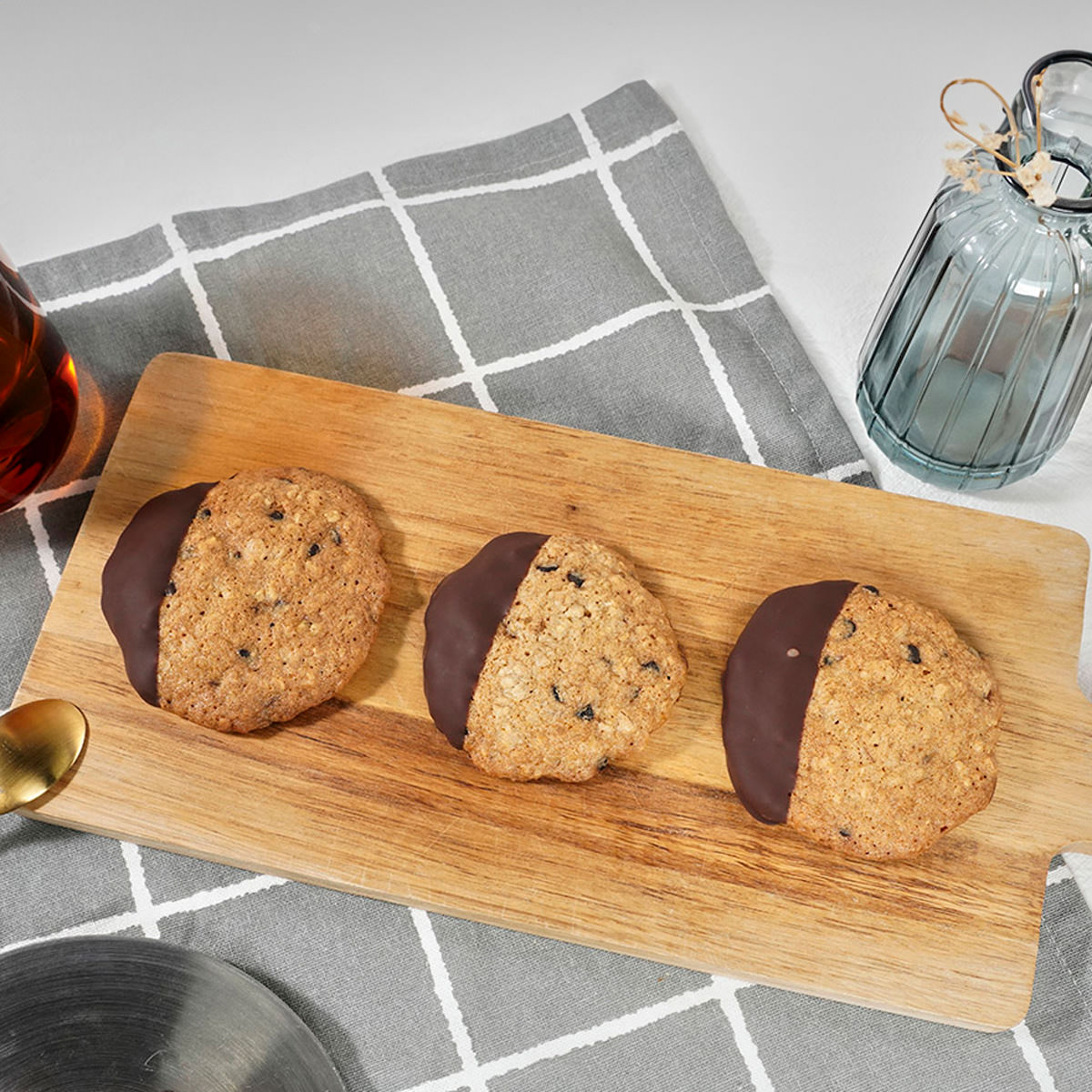 ●原材料:チョコチップ(マレーシア製造)、無塩バター、オートミール、小麦粉、卵、チョコレート、ゲランド塩、ブラウンシュガー、砂糖/ベーキングパウダー、乳化剤、重曹、(一部に卵・小麦・乳成分・大豆を含む)