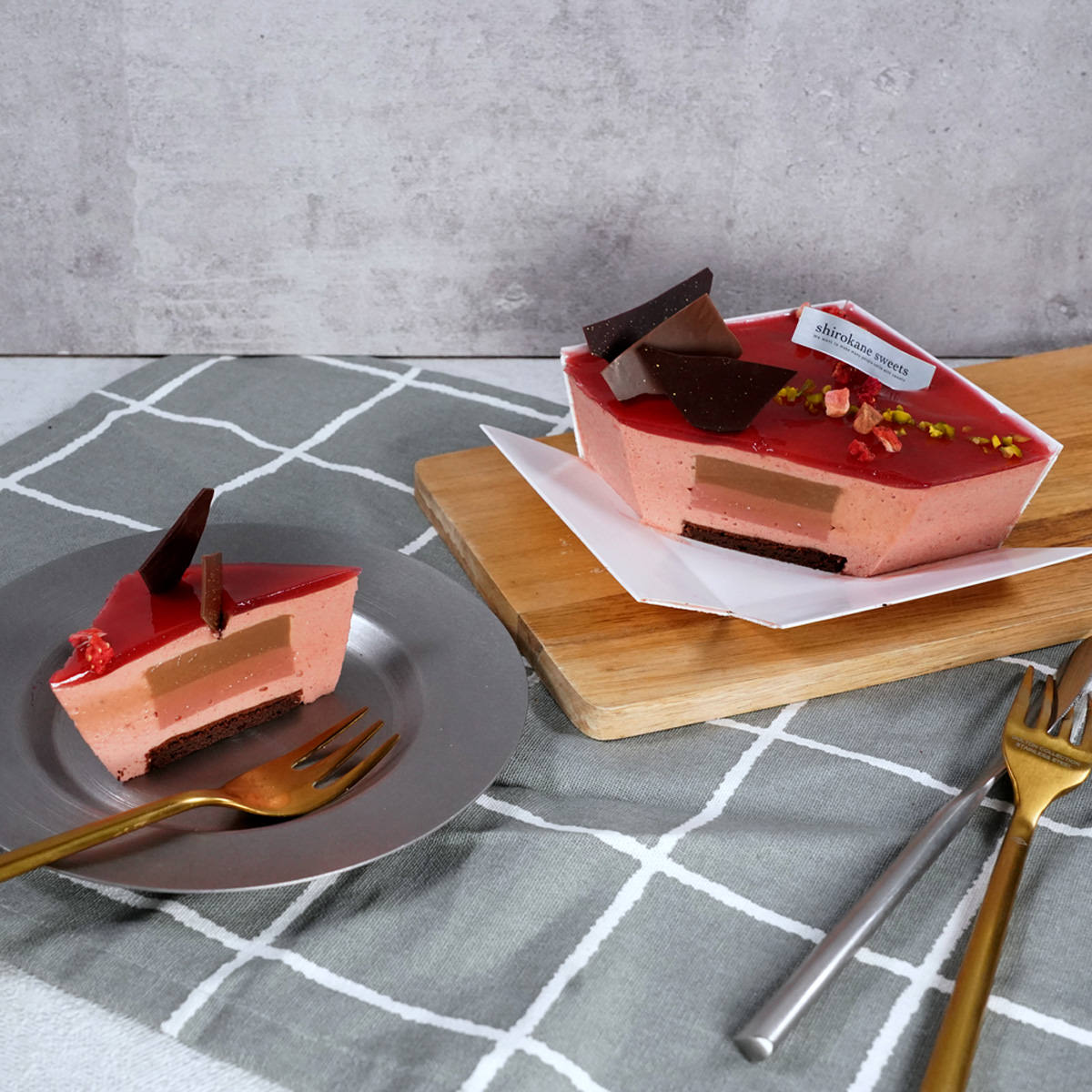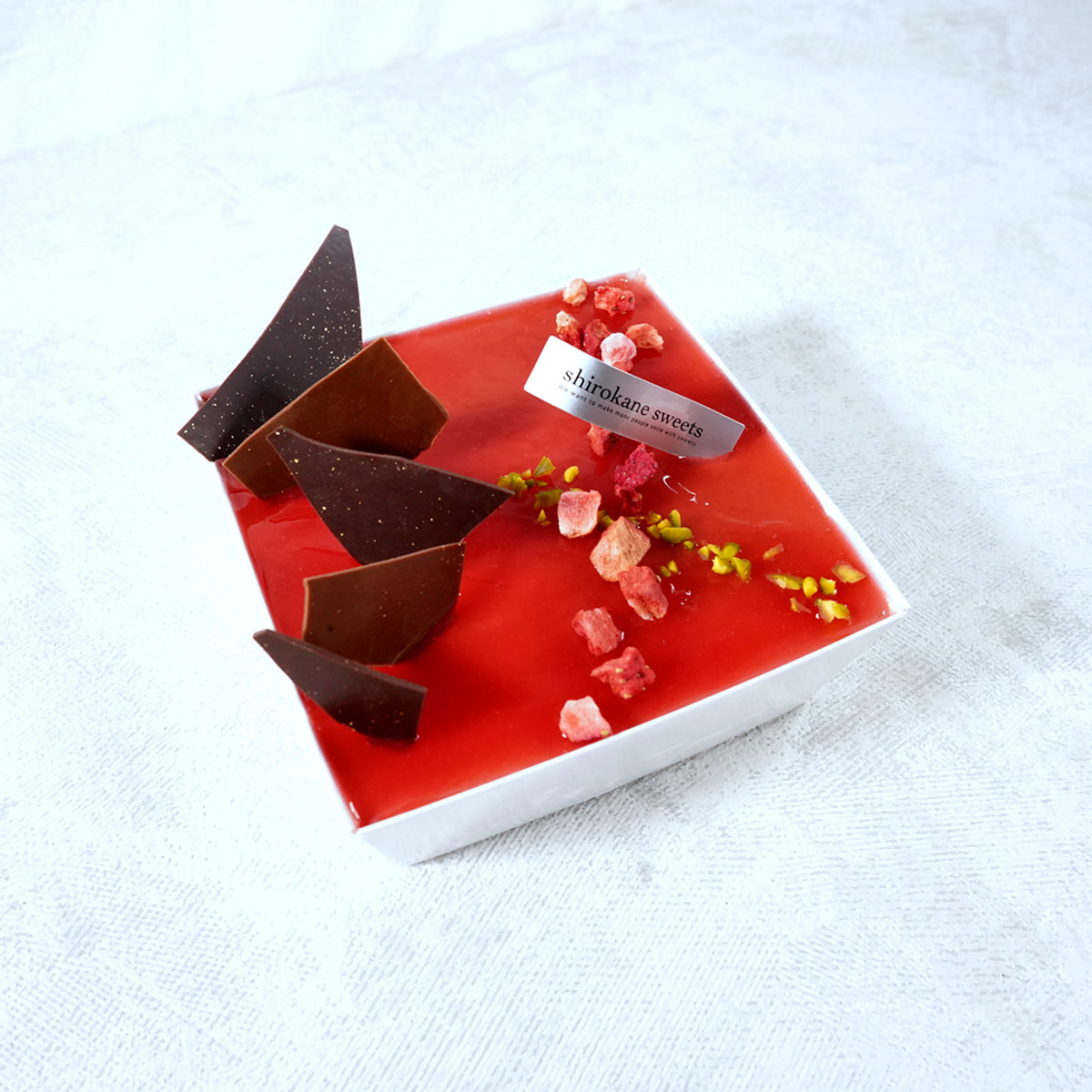 「スイーツボックス 白金ミロワール フランボワーズ」は、美味しい季節のフルーツと、原材料のこだわりがコンセプトのスイーツ専門店「shirokane sweets TOKYO/白金スイーツ(シロカネスイーツ)」が作る、鏡のように美しい光沢があるラズベリーのケーキです。甘みと酸味を楽しんでいただく真っ赤なケーキ、ミロワールフランボワーズ。素材を生かし、上品に仕上げた白金ミロワールは、shirokane sweets TOKYOの逸品です。昼下がりのティータイムのお供として、ディナーのドルチェなどとしてご利用いただくことで、贅沢な気分を味わえます。本品は3号サイズのホールケーキとほぼ同じサイズとなり、2、3名さまでお召し上がりいただくのに適した分量です。冷凍でお届けしますので、解凍してからお召し上がりください。