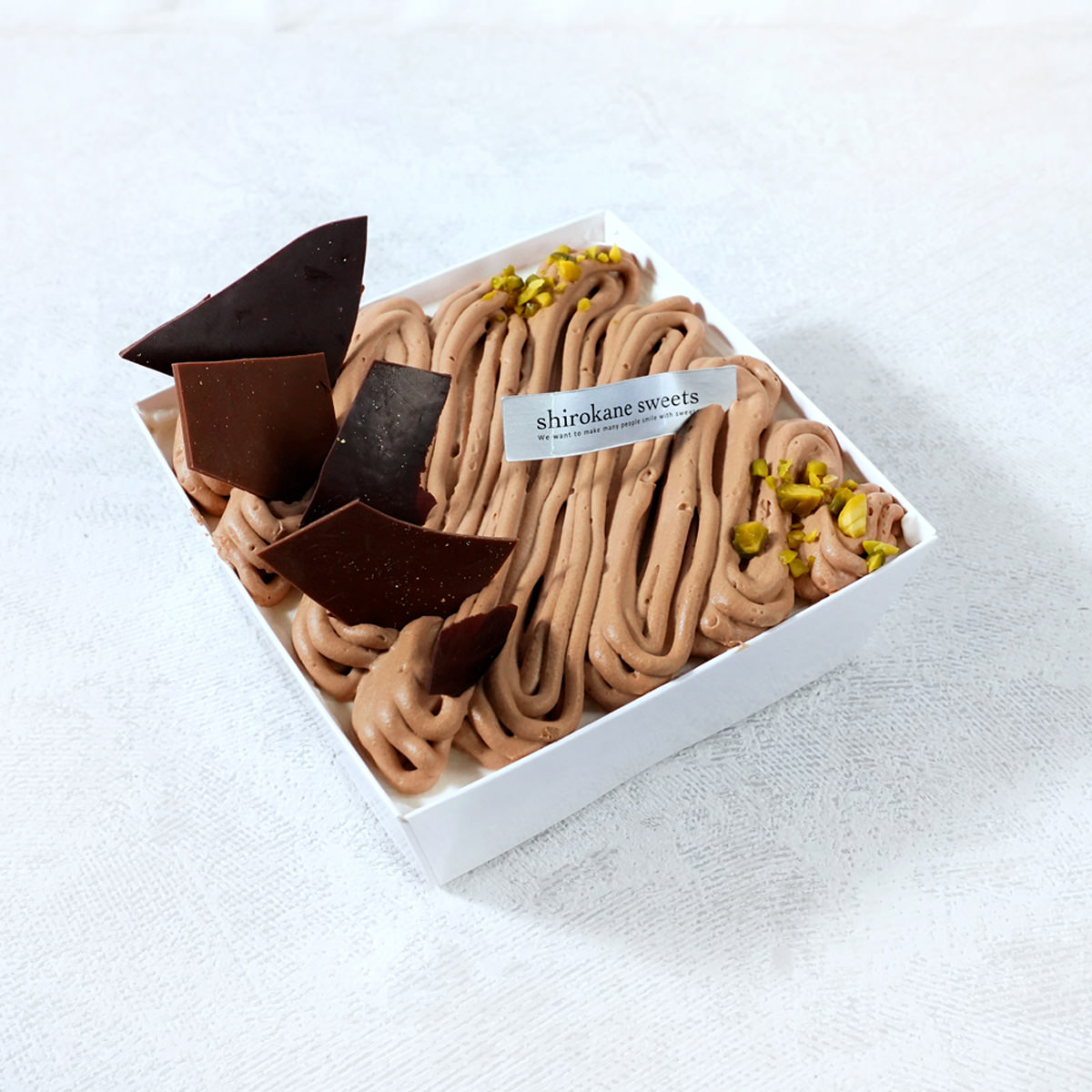 「スイーツボックス 白金モンブラン ショコラ」は、美味しい季節のフルーツと、原材料のこだわりがコンセプトのスイーツ専門店「shirokane sweets TOKYO/白金スイーツ(シロカネスイーツ)」が作るショコラのモンブランです。カカオの香りを存分に楽しんでいただけるショコラを使用しております。素材を生かし、上品に仕上げた白金モンブランは、shirokane sweets TOKYOの逸品です。昼下がりのティータイムのお供として、ディナーのドルチェなどとしてご利用いただくことで、贅沢な気分を味わえます。本品は3号サイズのホールケーキとほぼ同じサイズとなり、2、3名さまでお召し上がりいただくのに適した分量です。冷凍でお届けしますので、解凍してからお召し上がりください。