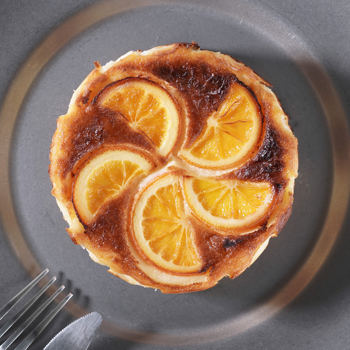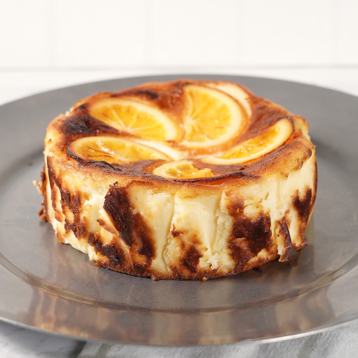 美味しい季節のフルーツと、原材料のこだわりがコンセプトのスイーツ専門店「shirokane sweets TOKYO/白金スイーツ(シロカネスイーツ)」が作る「白金バスクチーズケーキ オレンジ」です。外側はベイクされたカラメル感溢れる仕上がり、中はしっとり濃厚なレアチーズ。チーズ本来の味と、チーズケーキ職人の技が光る味の変化を楽しんでいただけます。