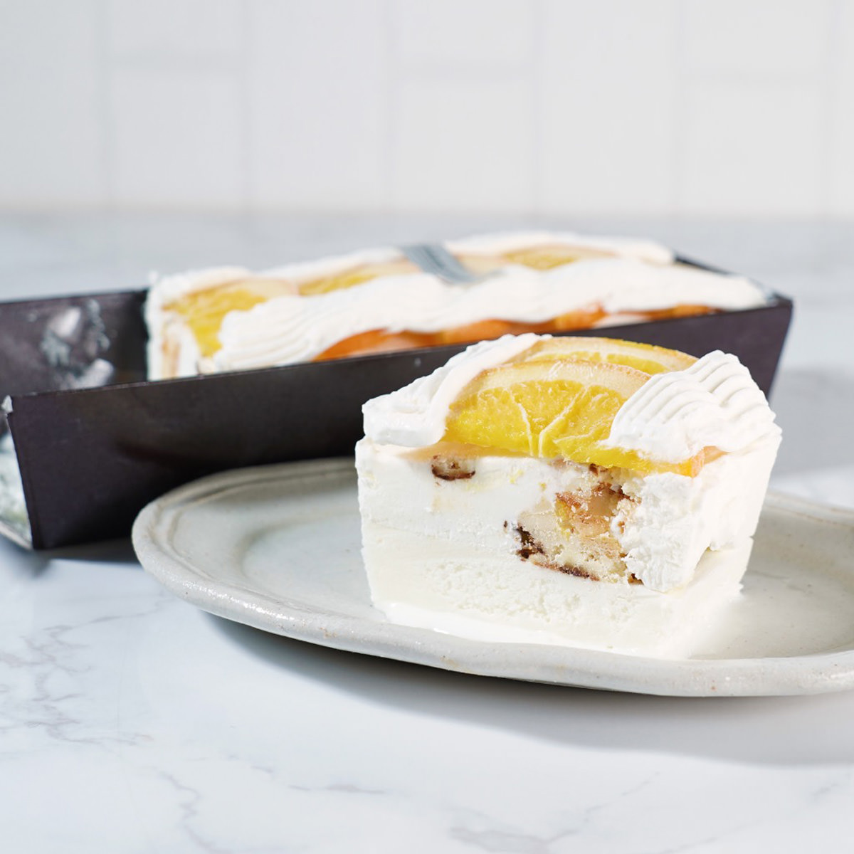 shirokane sweets TOKYO/白金スイーツ(シロカネスイーツ)の「白金プレミアム手作りアイスクリームケーキ オレンジ」です。美味しい季節のフルーツと、原材料のこだわりがコンセプトのスイーツ専門店「shirokane sweets TOKYO」が作るスイーツアイスクリームです。密度が濃く、全体的に滑らかで、素材の味をしっかり味わえます。「shirokane sweets TOKYO」だからこそ提供できるスイーツ・アイスの逸品、職人のこだわりがもたらす”sweets jewelry box(feeling of fun)”をお取り寄せでお楽しみください。
