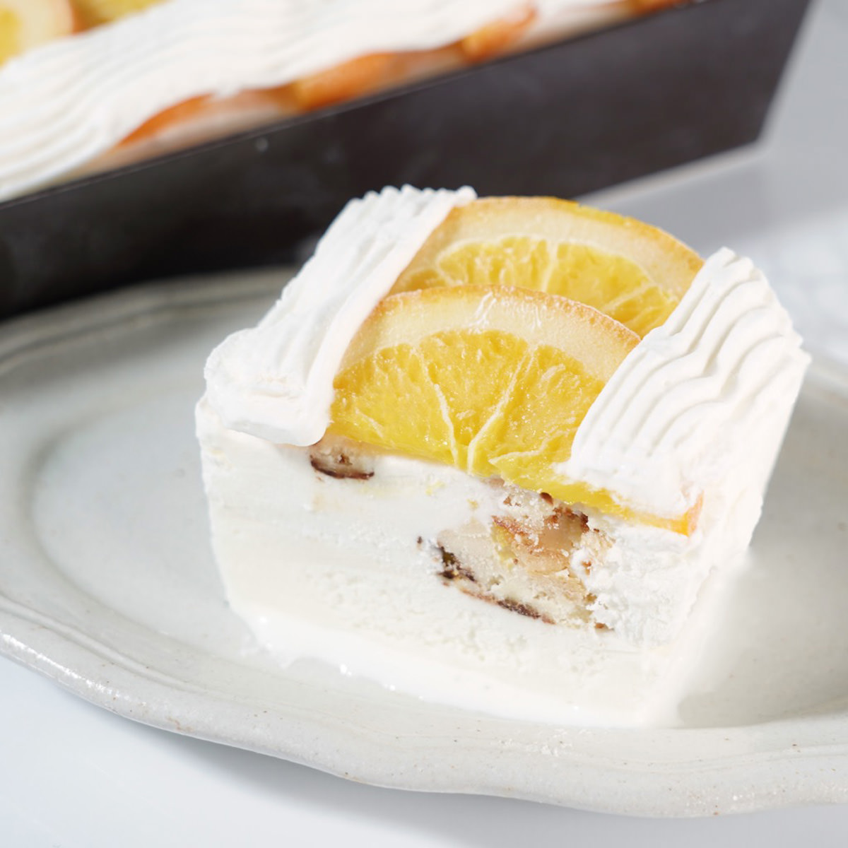 ●原材料:生クリーム(国内製造)、牛乳、オレンジ、砂糖、クリームチーズ、脱脂粉乳、乳等を主要原料とする食品、卵、デンプン、イヌリン、デキストリン、グルコマンナン/トレハロース、乳化剤、(一部に乳成分・卵・大豆・オレンジ・ゼラチンを含む)