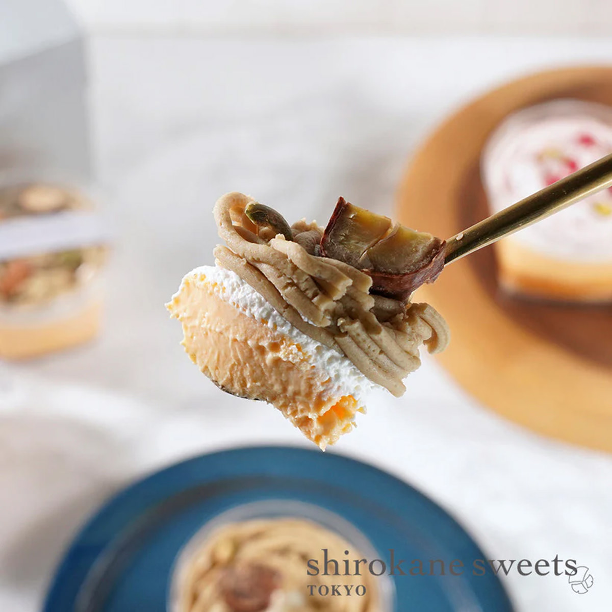 ●原材料:生クリーム(国内製造)、栗ペースト、加糖卵黄、和栗の渋川煮、砂糖、かぼちゃの種、バニラビーンズ/トレハロース、着色料(カラメル、フラボノイド)、金箔、(一部に乳成分・卵を含む)