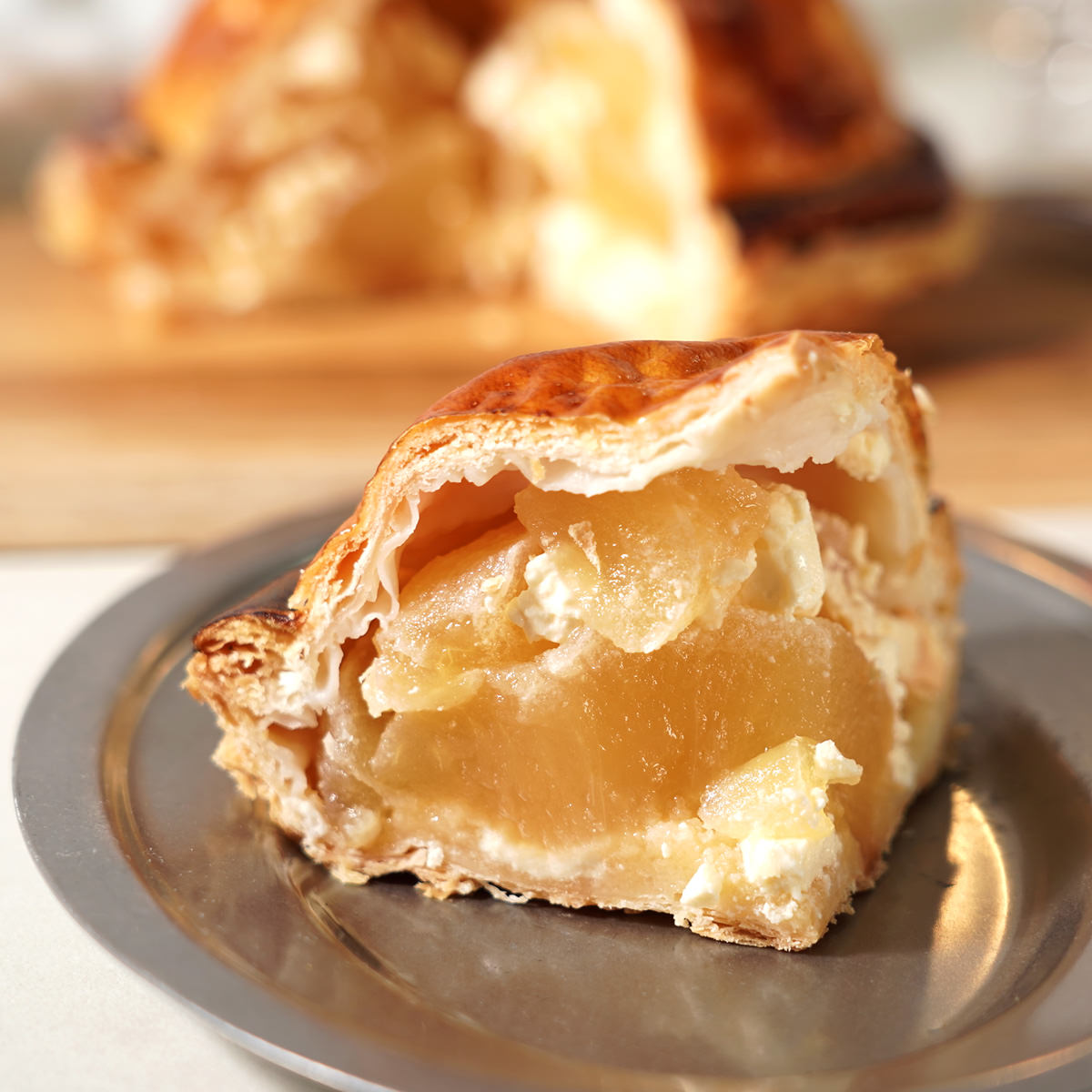「りんごの酸味と甘味を楽しむプレミアム白金アップルパイ チーズ」は、美味しい季節のフルーツと、原材料のこだわりがコンセプトのスイーツ専門店「shirokane sweets TOKYO/白金スイーツ(シロカネスイーツ)」が作る、素材の味を活かしたプレミアムアップルパイです。パティシエが厳選したりんごをじっくり炊き込み、シロップの旨みをしみこませました。高級なフレッシュバターを贅沢に使用し、香ばしい手織りのパイでげています。チーズとりんごの組み合わせが美味しい自慢の逸品をお取り寄せでお楽しみください。