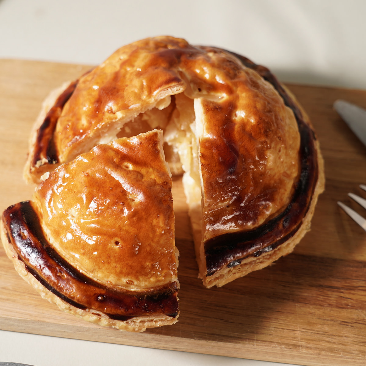 冷凍でお届けしますので、解凍後にお召し上がりになる分だけ取り分けし、表面にアルミホイルをかぶせて、トースターで数分焼き、中心部まで温めてください。その後アルミホイルを外して再度加熱すると、焼きたてサクサクを楽しめます。お好みでアイスクリームなどを添えて召し上がるのもおすすめです。
