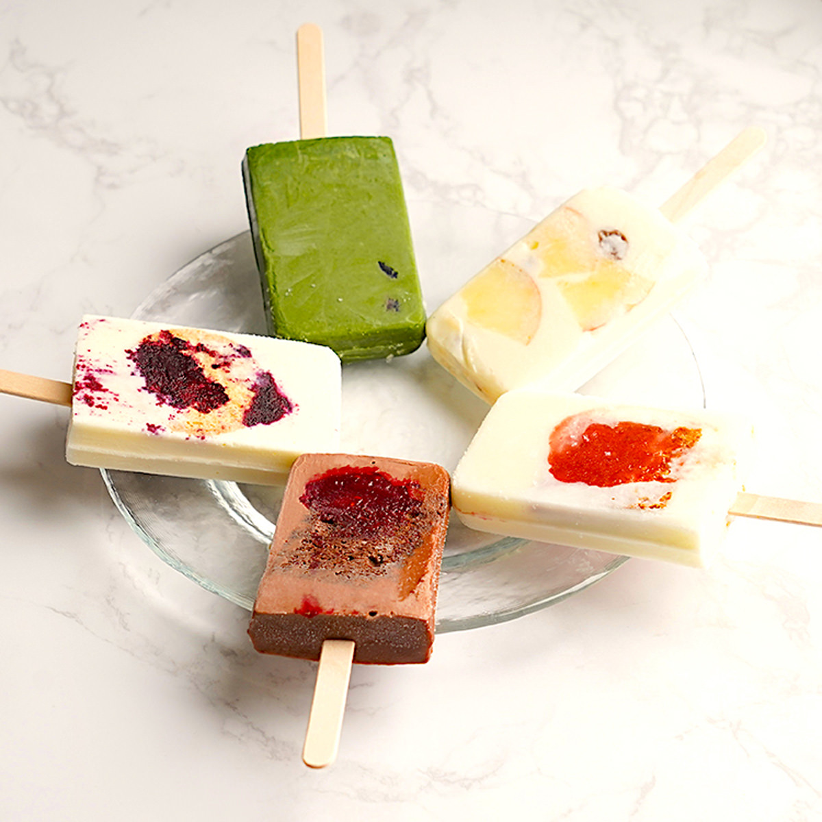 美味しい季節のフルーツと、原材料のこだわりがコンセプトのスイーツ専門店「shirokane sweets TOKYO/白金スイーツ(シロカネスイーツ)」が作る「冬のプレミアムスイーツアイスキャンディ」です。素材の味を活かし、スイーツをそのままアイスにしたような贅沢な逸品です。原材料の素材を生かした製法で、1本で大きな満足感を得られます。カラフルなルックスで、見た目にも楽しんでいただける贅沢なアイス。抹茶、ガトーショコラフランボワーズ、苺のミルフィーユ、ラムレーズン&りんご、ブルーベリーレアチーズを詰め合わせたお得なセットです。スイーツ好きな方にへのプレゼントにもおすすめです。