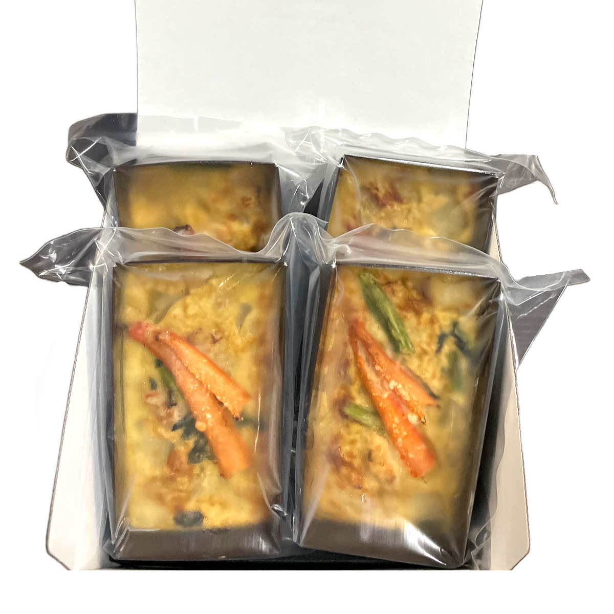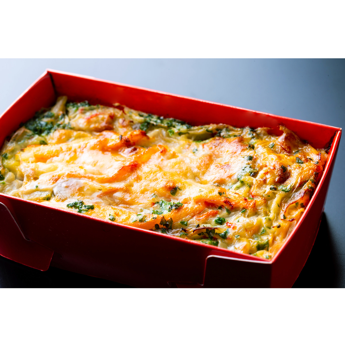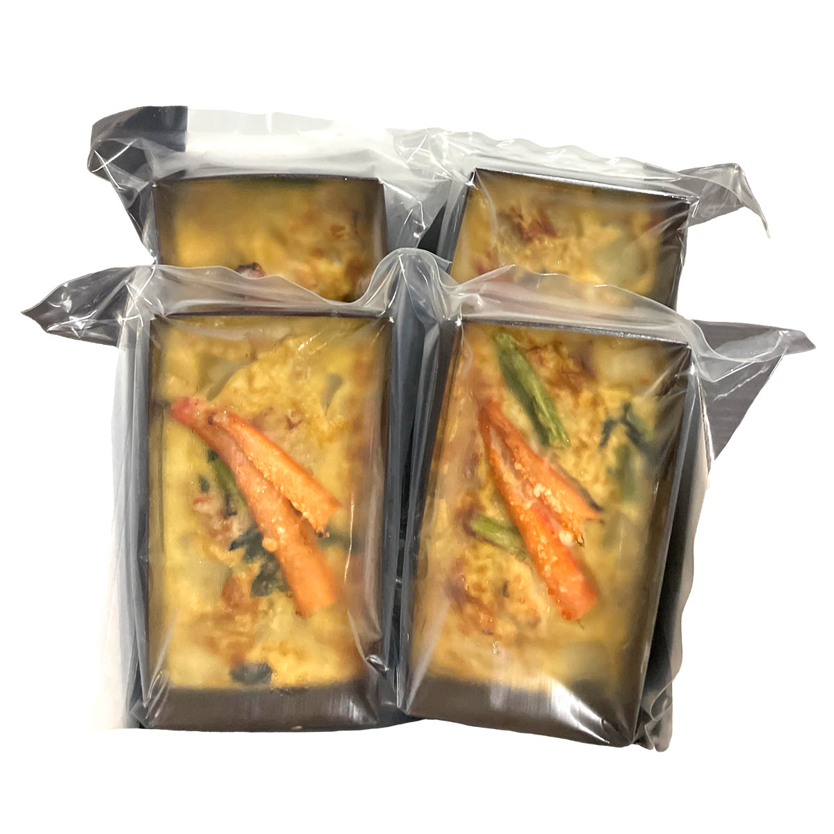 ●原材料:牛乳(国内製造)、紅ずわい蟹(福井県産)、鶏卵(国産)、玉ねぎ、まいたけ、生クリーム(乳製品)、小麦粉、かにエキス、ほうれん草、植物油脂、ナチュラルチーズ、食塩、唐辛子、(一部にかに・小麦・卵・乳成分・大豆を含む)
