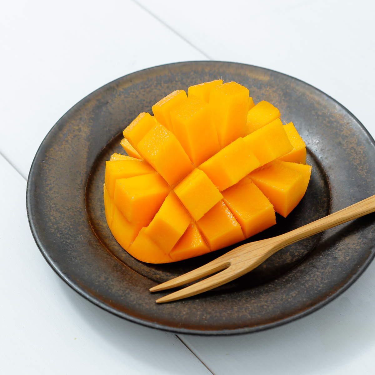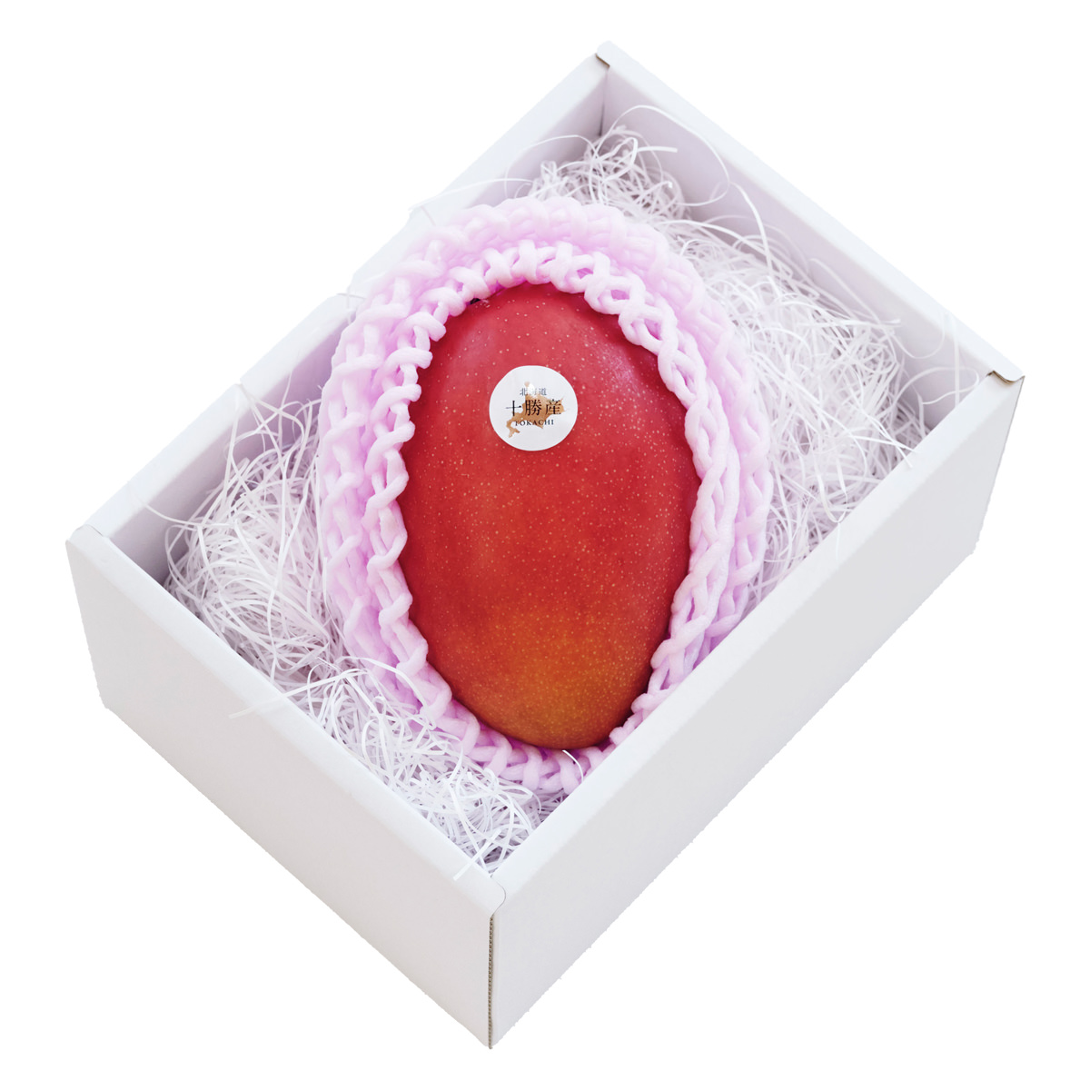 白銀の地”北海道 音更町(おとふけちょう)”で育つマンゴー、糖度11~14.9度の「白銀の太陽」です。長い日照時間やモール温泉、雪などの自然・再生可能エネルギーを活用し、ビニールハウス栽培により生育時期を調整して、冬に出荷しています。湿度が低く寒い季節に実るので、繊維質を感じにくく、えぐ味のないジューシーな味わいをお楽しみいただけます。北海道十勝は湿度が低く、冬は害虫もいないため、栽培期間中農薬不使用です。夏は保存した「雪」を用いて冬と勘違いさせ、冬は「温泉水」を使って温め、全国有数の日照時間に恵まれた十勝の太陽によって希少な真冬のマンゴーを生み出します。収穫時期は、宮崎マンゴーが6~7月なのに対して、11月~12月と真逆です。再生可能エネルギー、十勝の豊かな自然エネルギー、沢山の仲間の力を借りて、多くの奇跡が積み重なって実った、冬に生産される希少なマンゴーをご賞味ください。