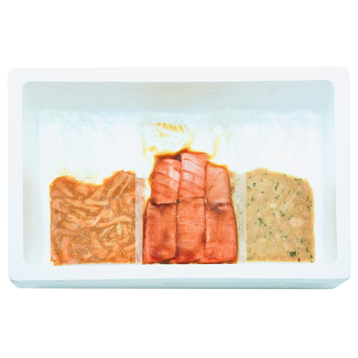 ●数量・内容:鮪なめろう90g、鮪ユッケ90g、中トロ鮪漬け(6切)