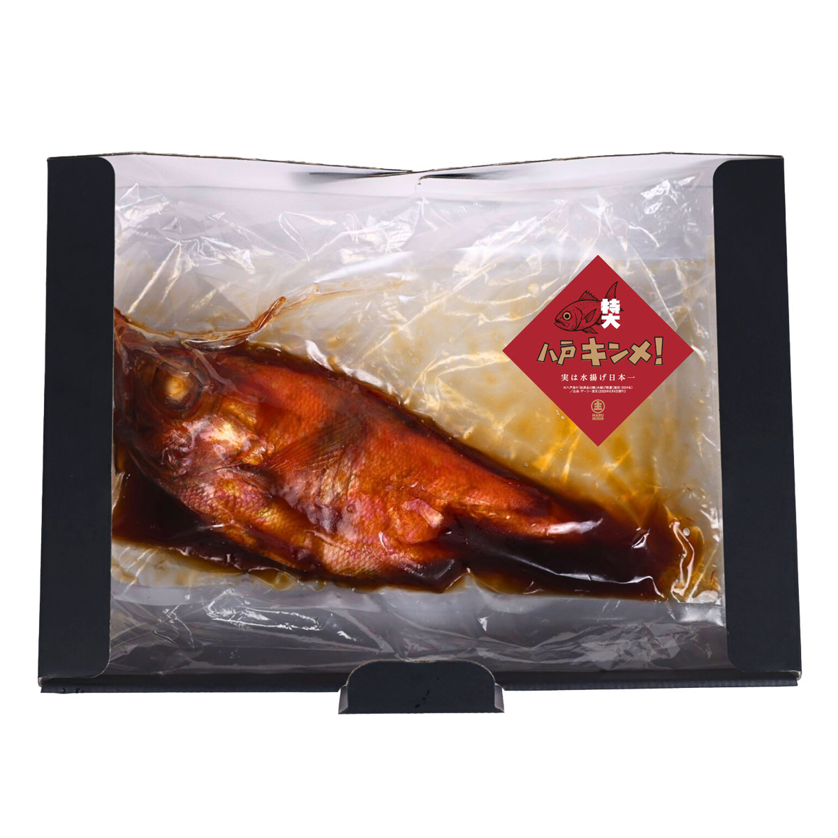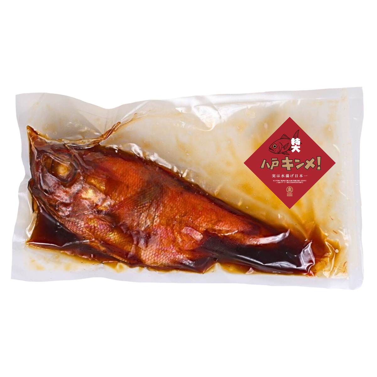 ●原材料:キンメダイ(青森県八戸港産)、醤油、砂糖、米発酵調味料、還元水飴、醸造酢 、唐辛子、生姜/甘味料(ソルビット)、調味料(アミノ酸等)、増粘剤(加工でん粉、増粘多糖類)、(一部に小麦・大豆・ゼラチンを含む)
