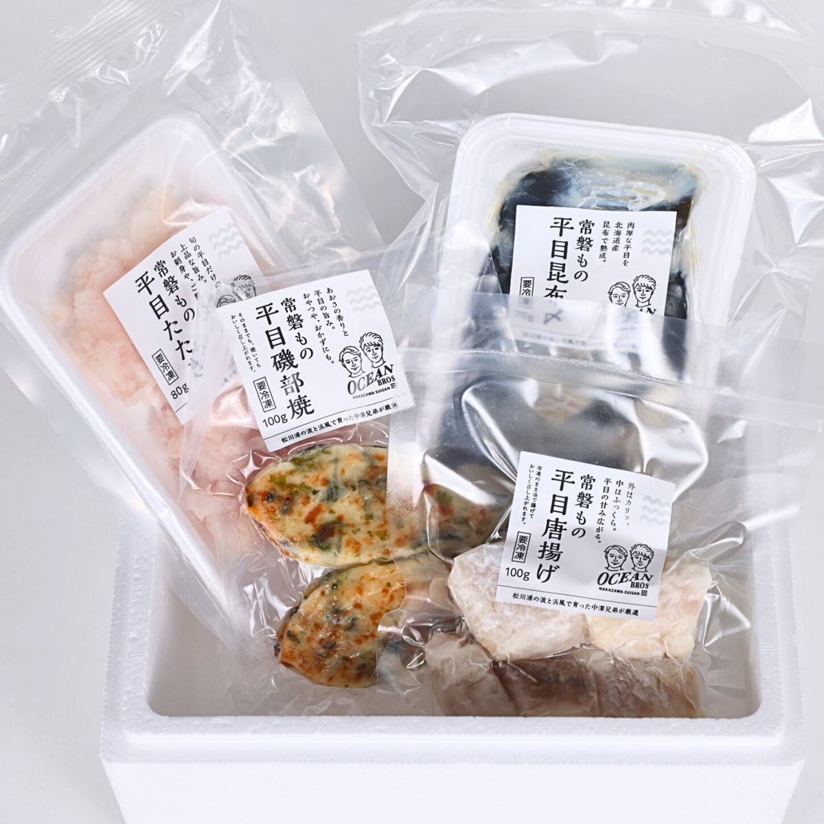 「uoya 中澤水産 常磐もの 平目づくし 食べ比べセット」は、鮮度の良い常磐もの「ひらめ」を多彩に仕立てた逸品の贅沢な詰め合わせです。福島・相馬の海が育んだ高級魚「ひらめ」を使用。昆布〆の繊細な旨み、上品な唐揚げ、あおさ香る磯辺焼き、新鮮なたたきをお楽しみいただけます。職人の技で仕立てた逸品を、ご家庭で切る・揚げる・焼くだけで手軽にご堪能いただけます。格式ある味わいと手軽さを兼ね備えたセットです。お酒のおつまみ、ご飯のお供、食卓のおかずなどとして、お取り寄せでお楽しみください。