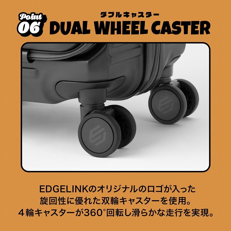 EDGELINKのオリジナルのロゴが入った旋回性に優れた双輪キャスターを仕様。