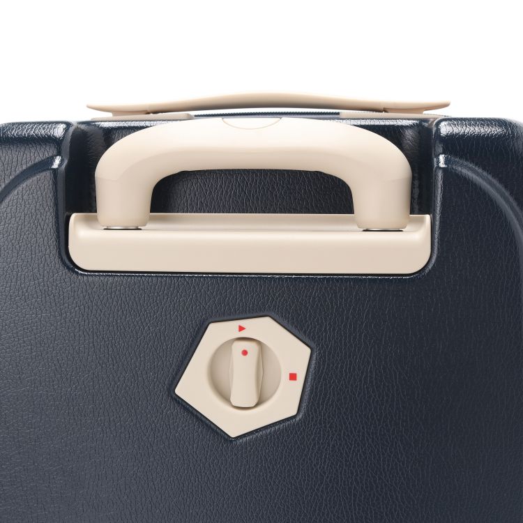 少しレトロな雰囲気とレザー調のマットな質感がおしゃれなスーツケース。