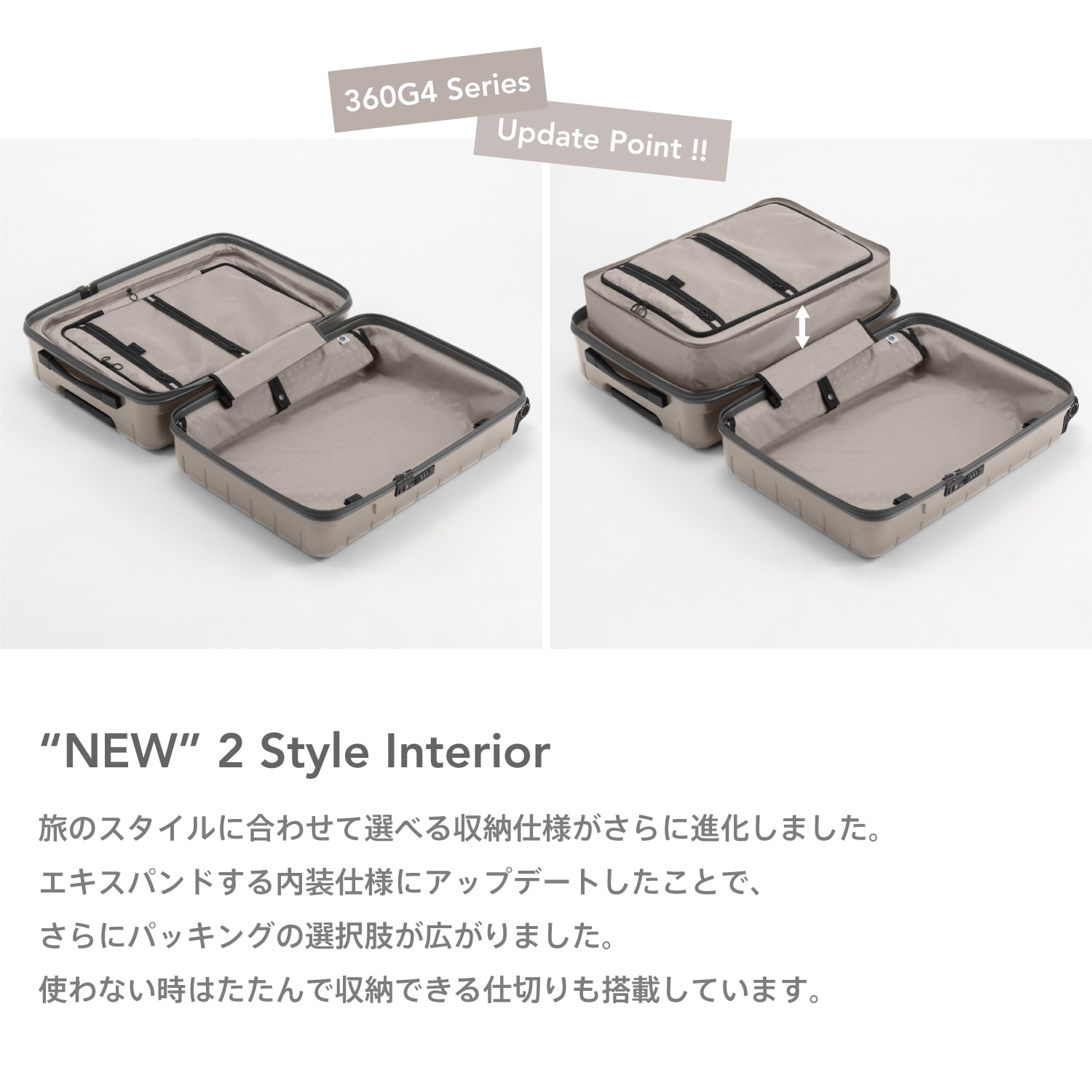 タテにもヨコにも開ける独自のファスナーシステムを採用した360G4シリーズより、