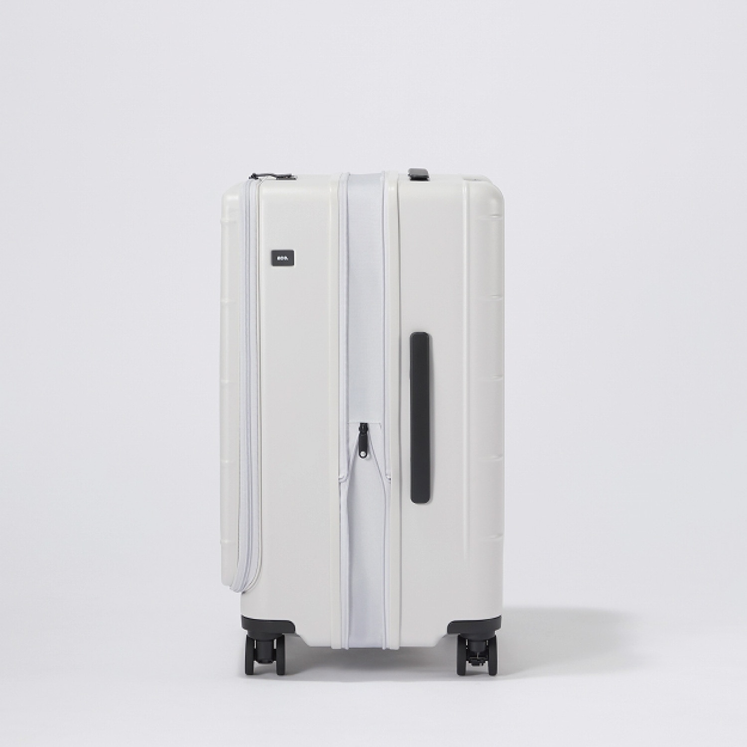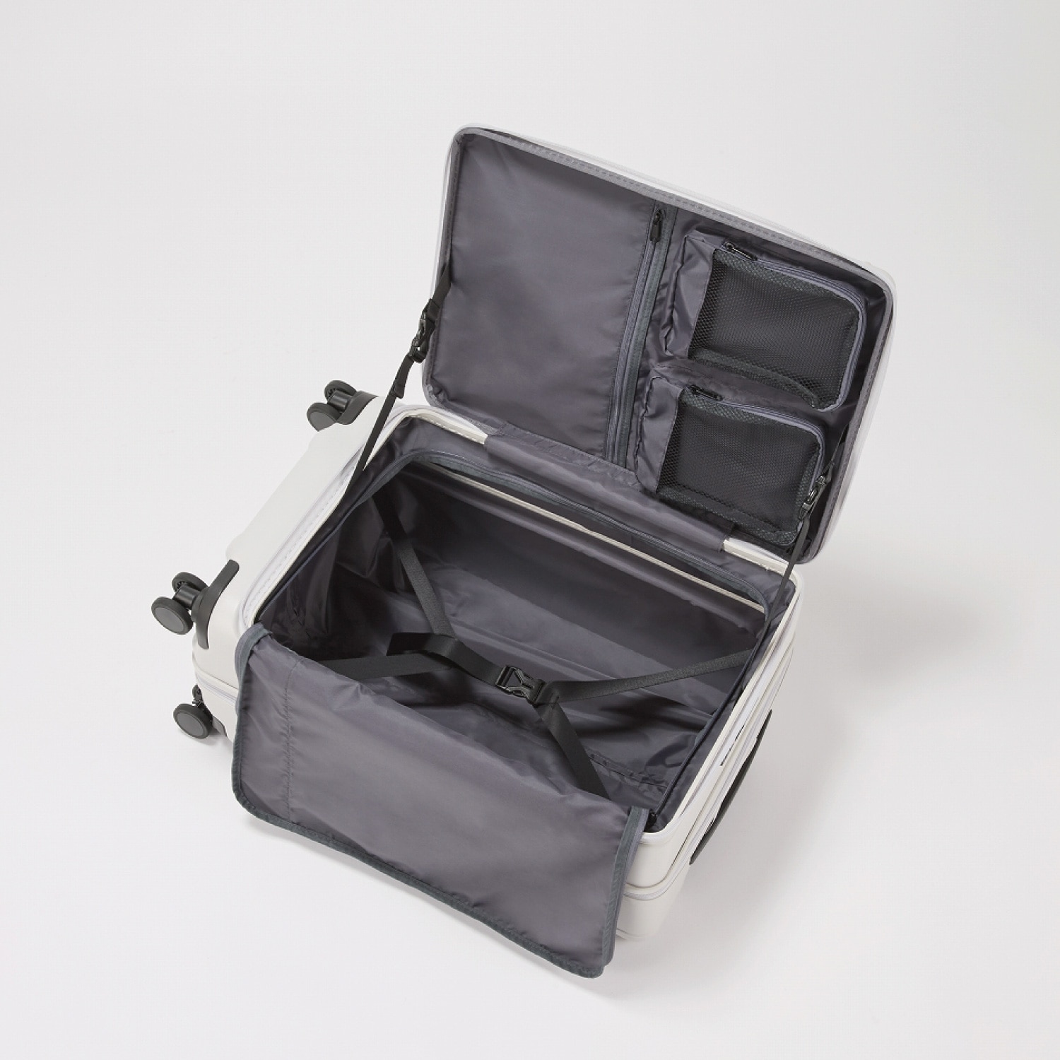 シンプルな格子状のデザインがポイントのフロントオープンタイプシリーズ。シンプルな格子状のデザインがポイントのフロントオープンタイプの新作スーツケース。