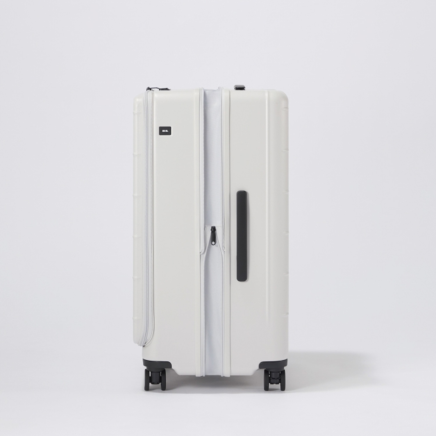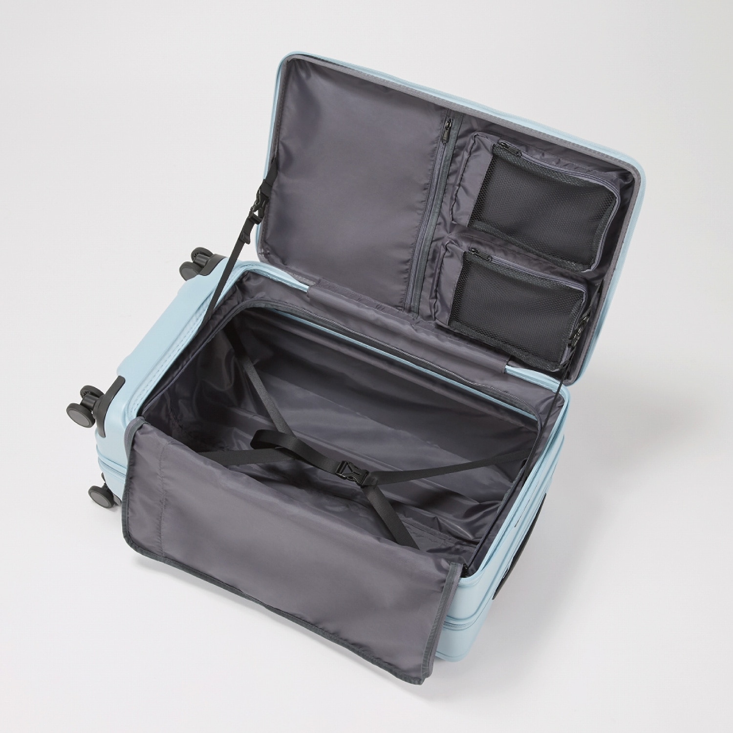 シンプルな格子状のデザインがポイントのフロントオープンタイプシリーズ。シンプルな格子状のデザインがポイントのフロントオープンタイプの新作スーツケース。