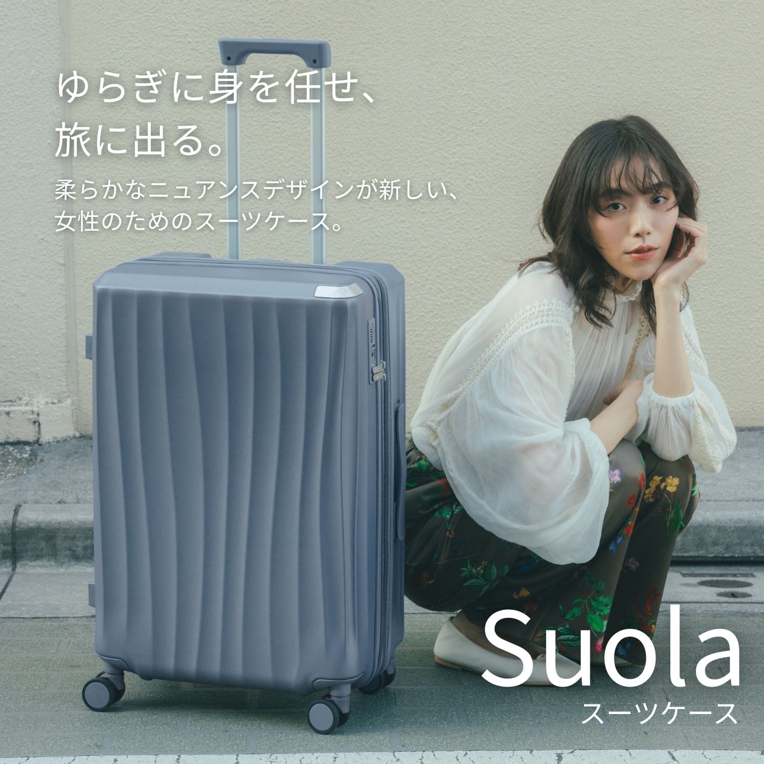 柔らかなニュアンスデザインが新しい、女性のためのスーツケース。