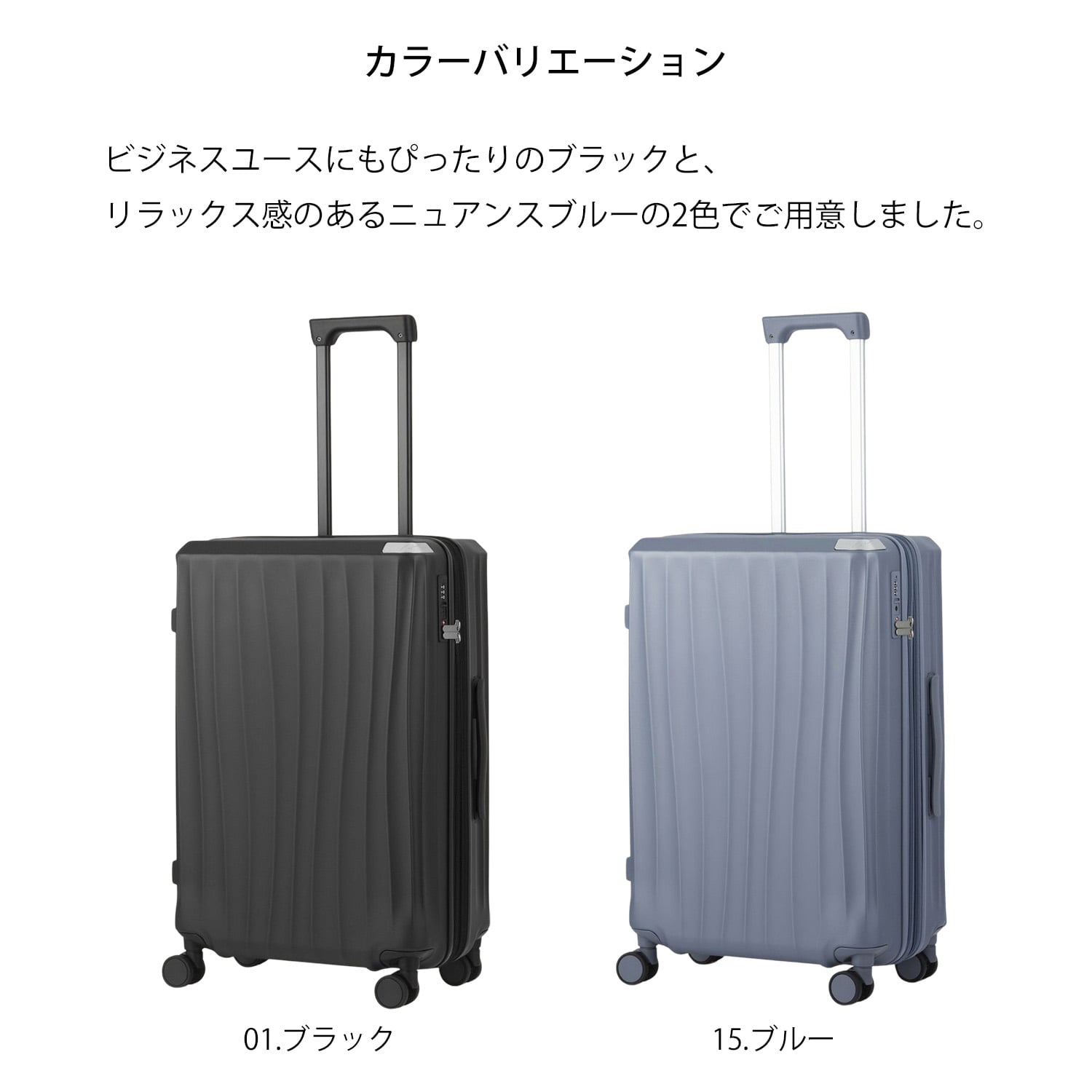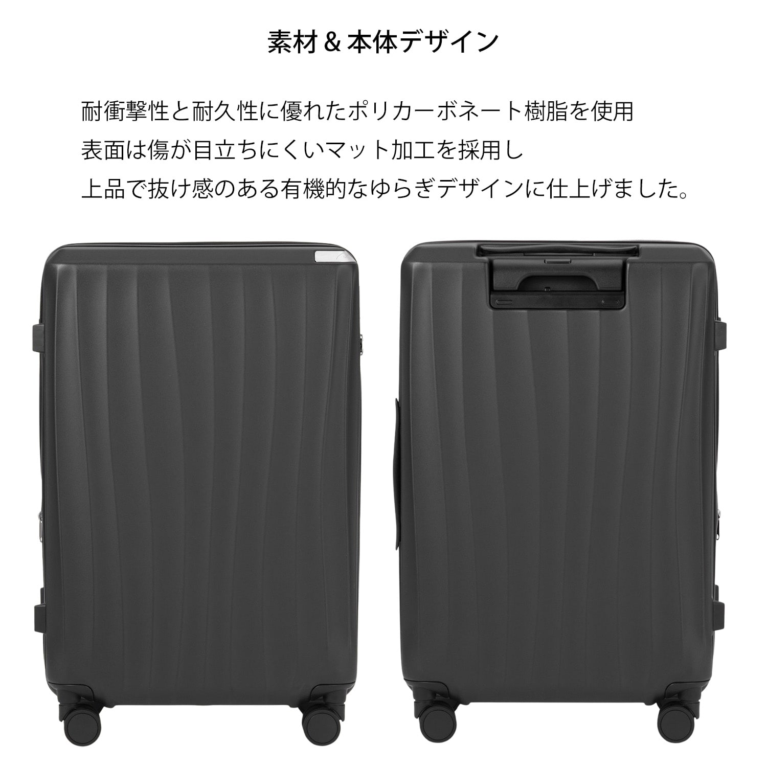 また、お土産などで荷物が増えた際に容量を増やせる「エキスパンダブル機能」、公共機関での移動に必須の「キャスターストッパー」、ワンピースやジャケットなど大切な衣類を分けて丁寧に収納できる「ドレスクローゼット」など、出張やオフの日にも必要な機能性を揃えました。