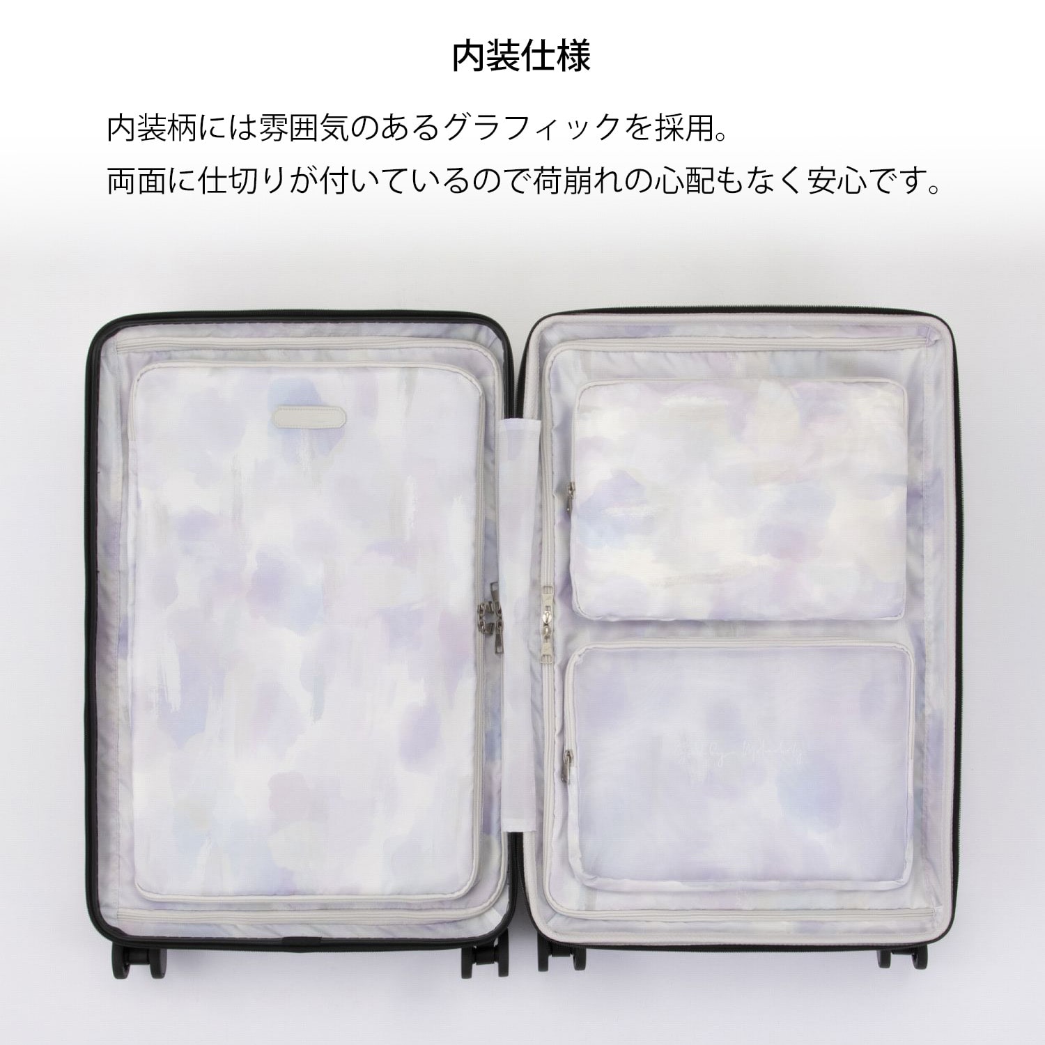 パッキングの時間が楽しくなる、華やかで特別感のある内装です。