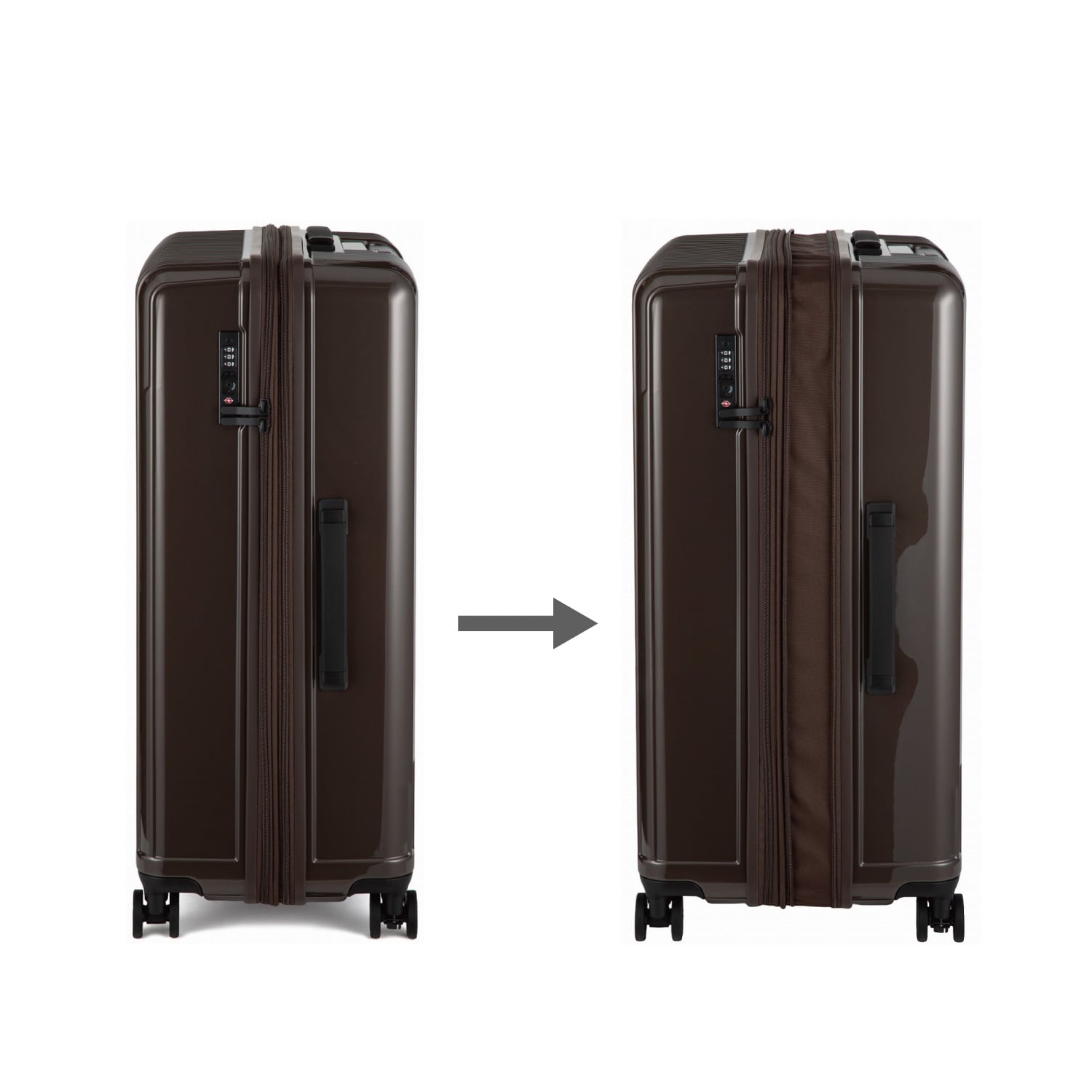 7-10日程度の旅に適したサイズ、無料預け入れ手荷物国際基準サイズ。(マチ幅 未拡張時)