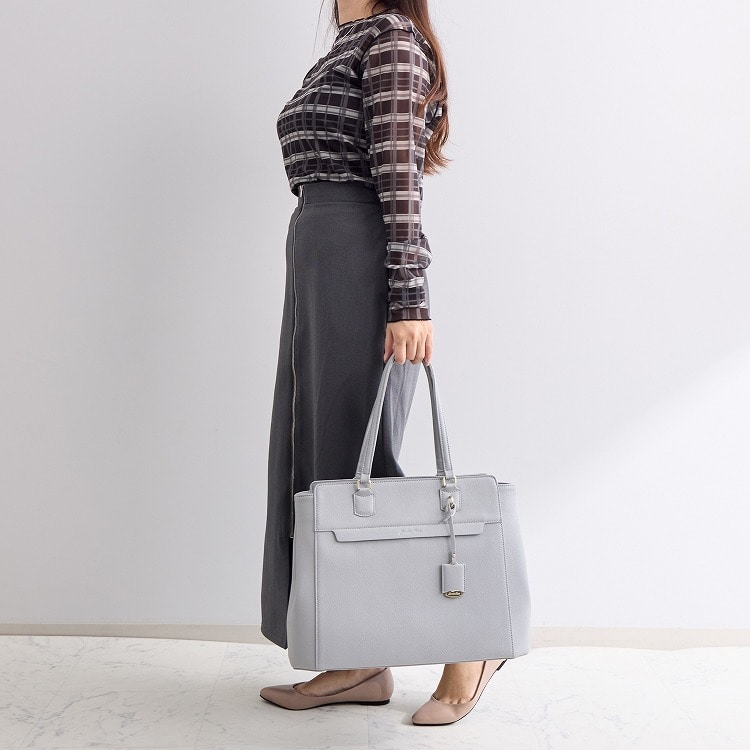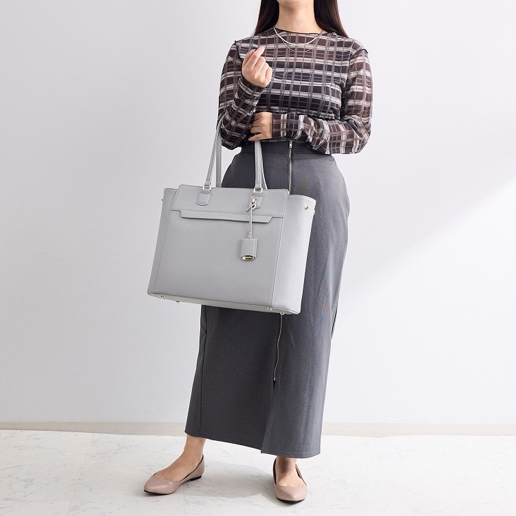 分厚いファイルや資料を持ち運ぶ日は手持ちで、荷物の重さを分散。荷物の少ない日はバッグにINして身軽に…と荷物の量に応じて使い分けができます。