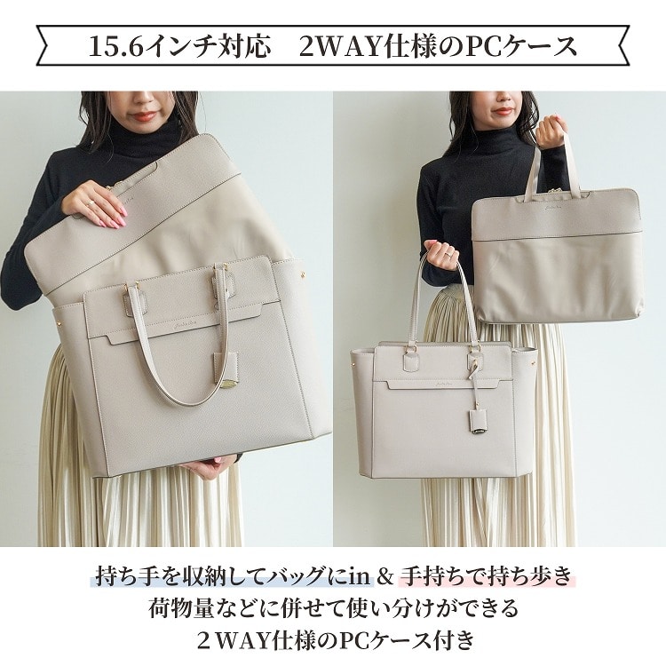 トートバッグタイプには着脱可能なPCケース付き。手持ちでもバッグにINしてもお使いいただけます。