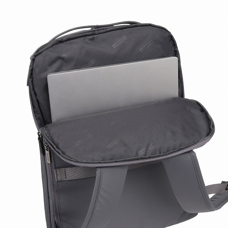 シンプルなデザインと、デジタルツールの持ち歩きにも対応したスマートな機能性が特徴のバッグ。