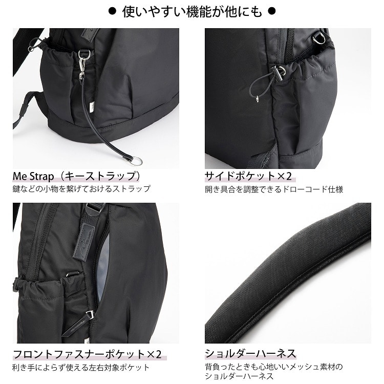 | 機能一覧 | 軽量/B5ファイル収納/タブレット収納(11.0inch)/シースルーポケット/他ポケット多数/Napping pl.(スマートフォンポケット)/Me Strap(キーストラップ) |