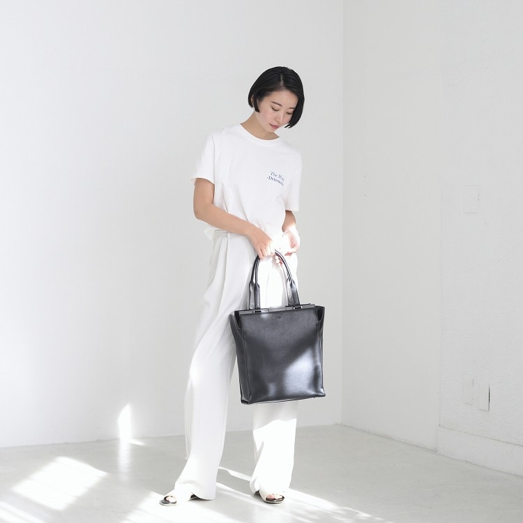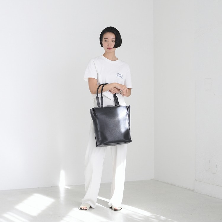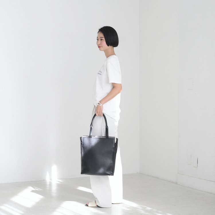 シンプルながらも洗練されたデザインで、どんなスタイルにもマッチ。シーンを選ばず活躍する、使い勝手抜群のトートバッグです。