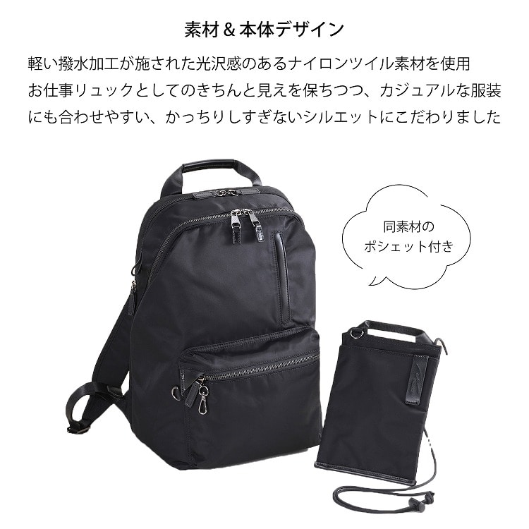 | 商品名 | W&.Day/Night ポッケス2 スリムリュック A4サイズ 13.3インチPC収納 15276 |