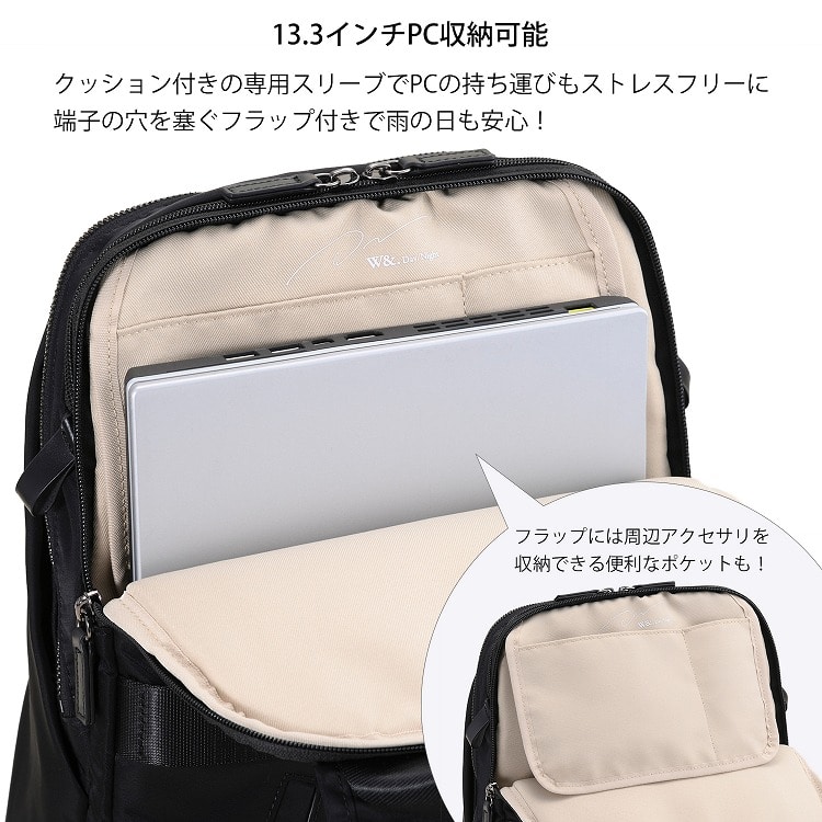 - > 【セール価格】W&.Day/Night ポッケス2 スリムリュック A4サイズ 13.3インチPC収納 15276