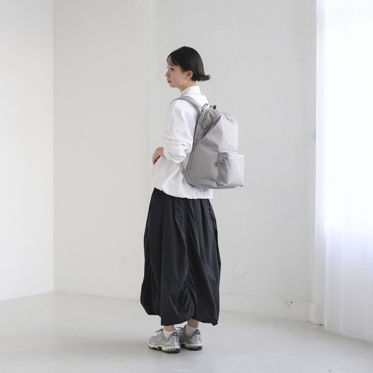 お仕事リュックとしてのちゃんと見えを保ちつつ、カジュアルな服装に合わせやすいような、かっちりしすぎないシルエットにもこだわりました。