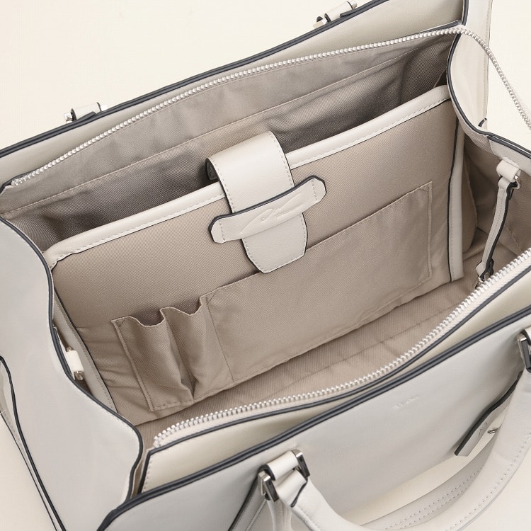 そんな意見から開発された「Mar ダブルハンドルトート」は、気軽に持てて抜群に使いやすいトート形状なのに、スクエアにすればきちんとコーデにも合わせやすい、万能型のお仕事バッグです。