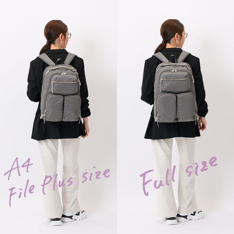 そんなわたしたちの思いから開発された、大容量でもファッショナブルで快適にお持ちいただけるリュックです。