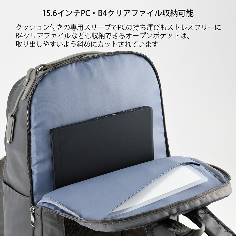 B4サイズのファイルや15.6インチPCが入るよう設計されたサイズ。