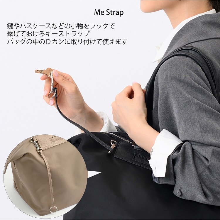 鍵やパスケースなどの小物をフックで繋げておけるキーストラップ。バッグの中のDカンに取り付けてお使いいただけます。
