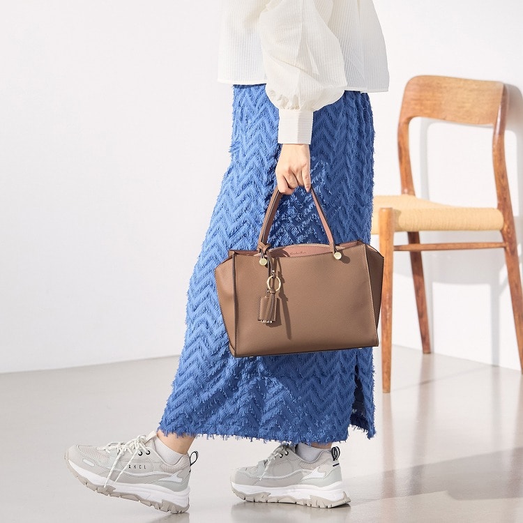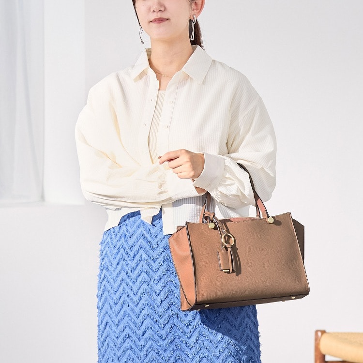 かっちりとしたデザインで、通勤にもおすすめのレディライクなハンドバッグ。