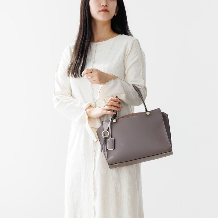 かっちりとしたデザインで、通勤にもおすすめのレディライクなハンドバッグ。