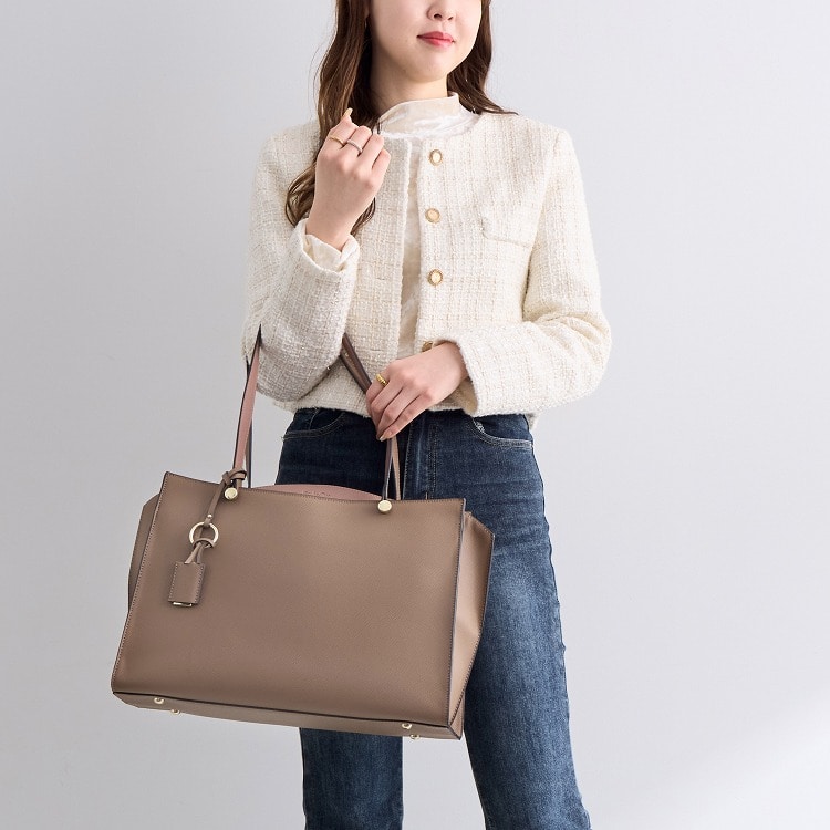 通勤にぴったりなかっちりと上品デザインのA4サイズトートバッグ。