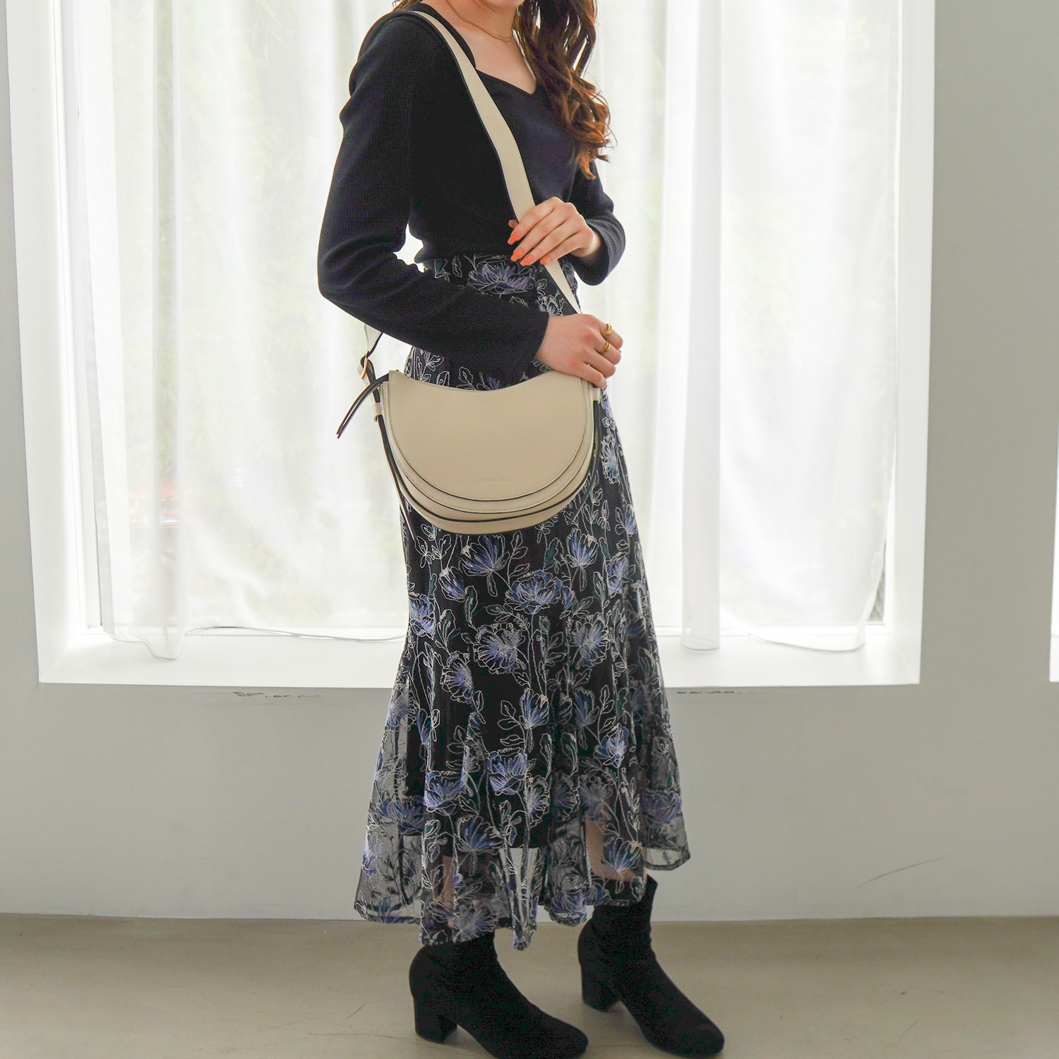 ・幅の広いショルダーベルトがコーディネートのアクセントに
